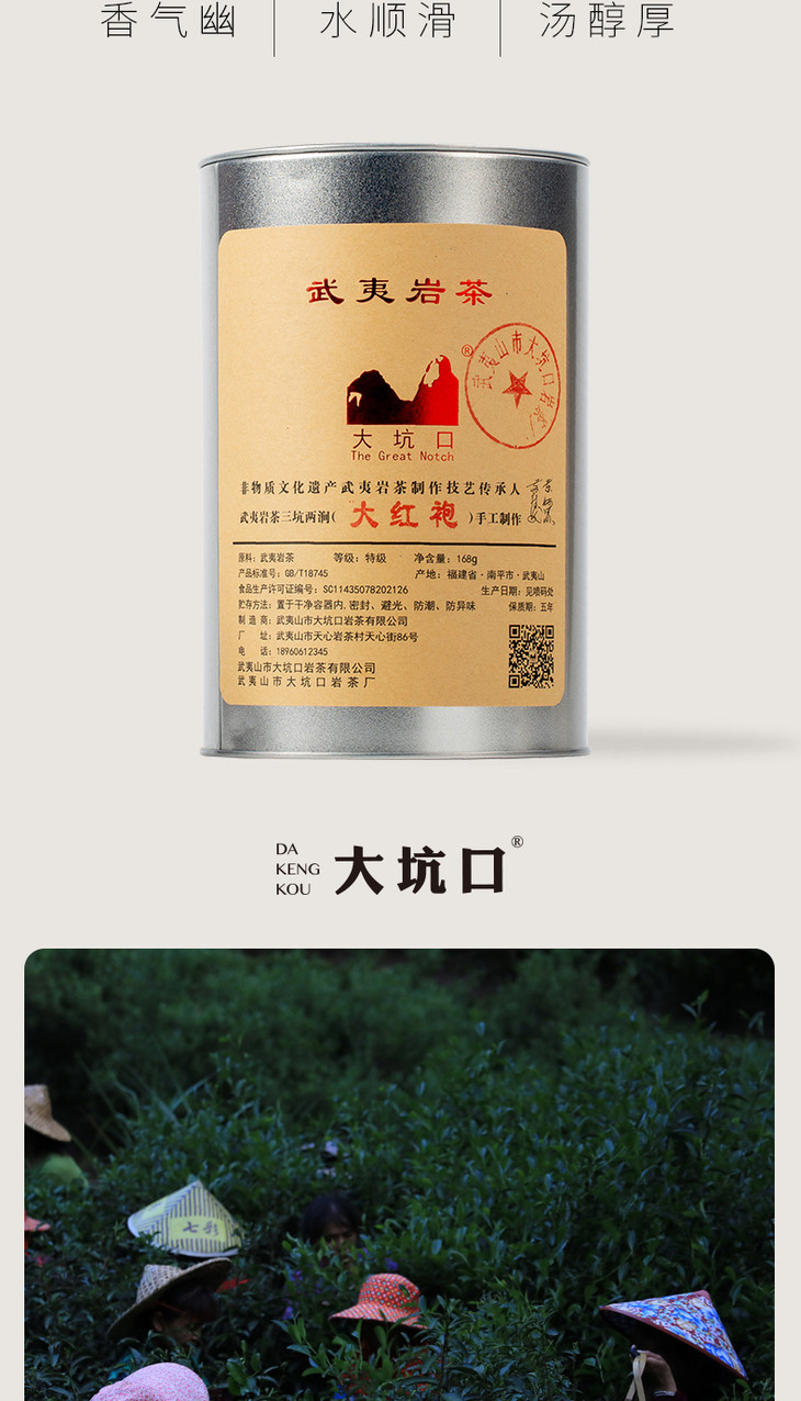 大坑口岩茶有限公司,位于武夷山市-天心村,茶山分布于正岩产区的“三坑、两涧”,由首批非物质文化遗产武夷岩茶制作技艺传承人:苏炳溪和第二批传承人:苏德发先生的精心手工制作,造就了大坑口岩茶的独特品质