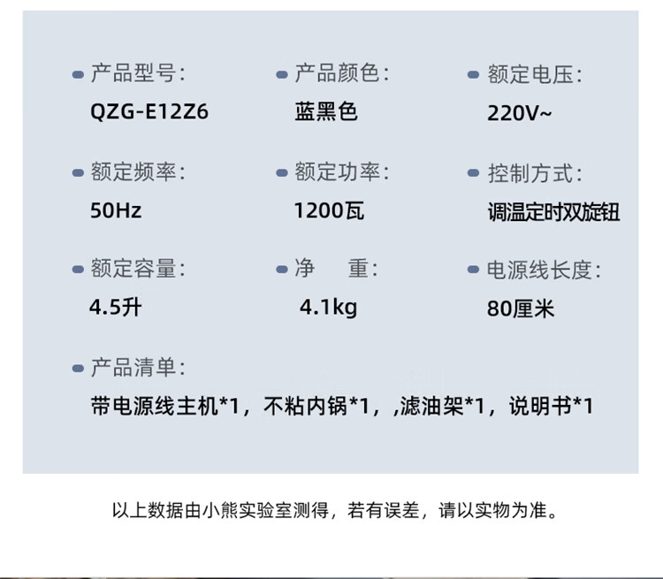 【安达联帮&小熊】空气炸锅QZG-E12Z6(厂家直发)
