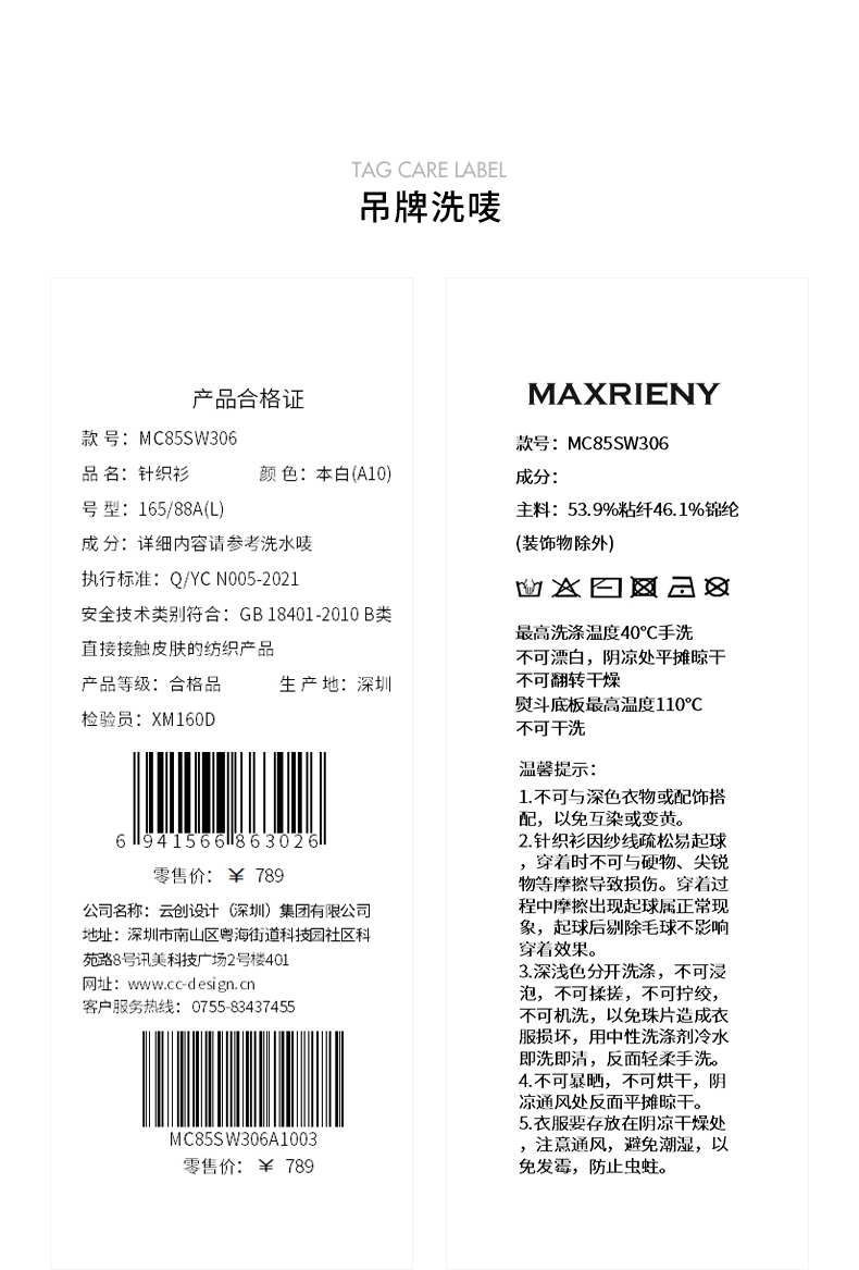 【商场同款】MAXRIENY修身弹力*亮钉珠毛衫2024夏季新款上衣女(货号:MC85SW306)
