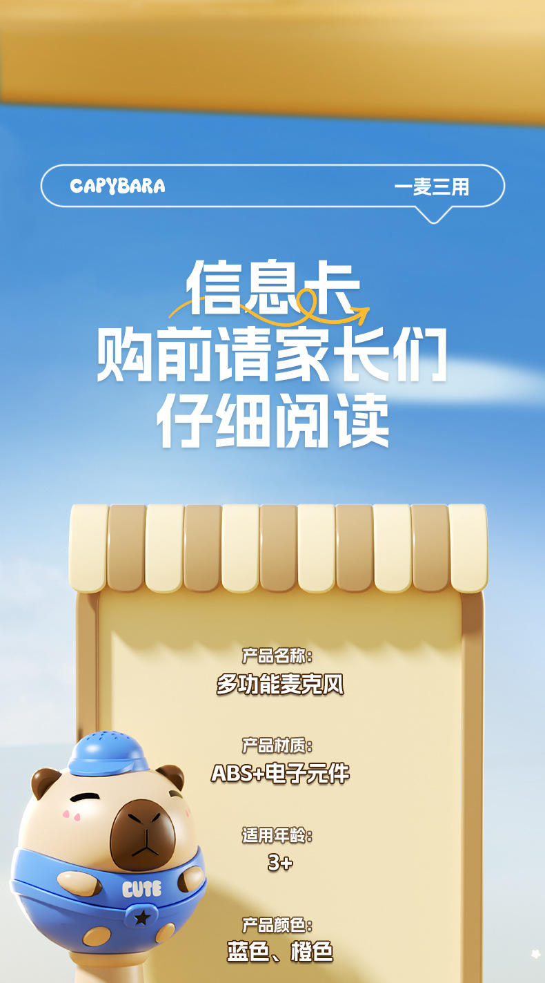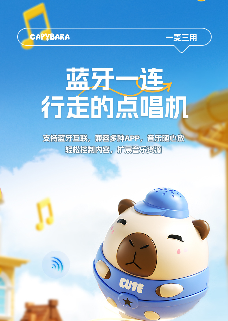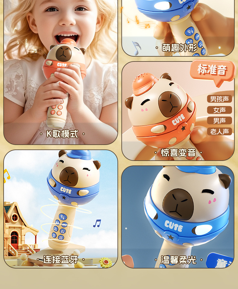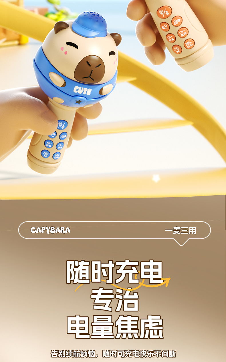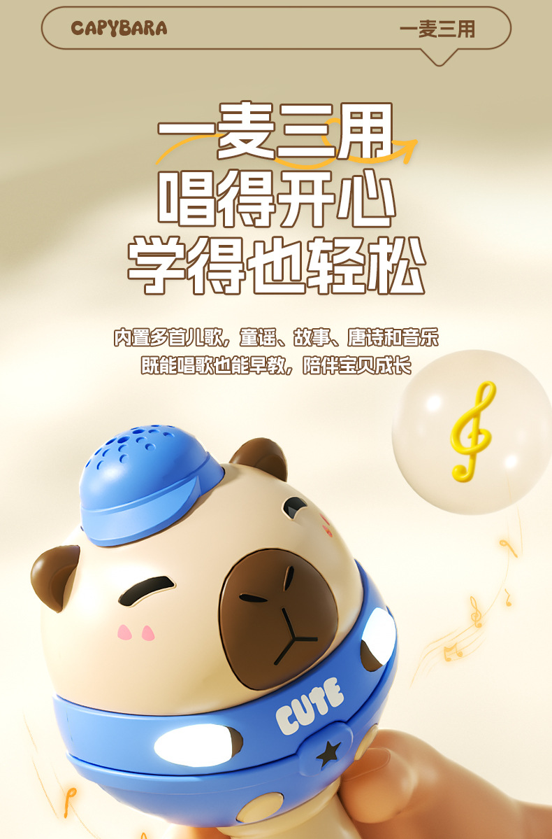 儿童节礼物!【水豚歌王,C位出道~】儿童蓝牙K歌麦克风 多功能话筒 无线音响宝宝玩具 礼品生日礼物-QQ