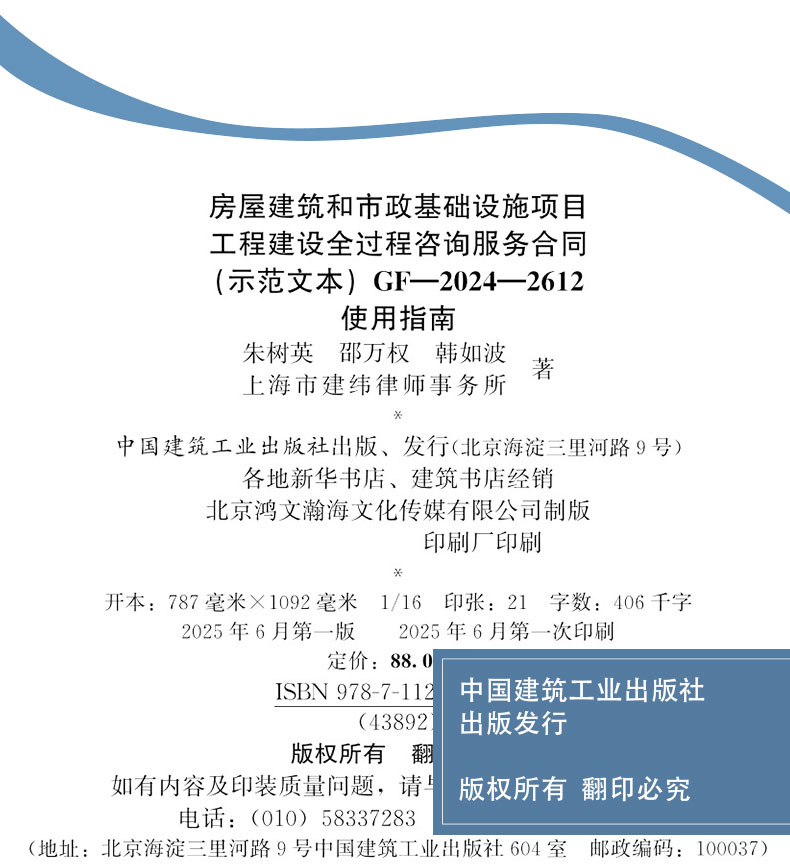 书名:房屋建筑和市政基础设施项目工程建设全过程咨询服务合同(示范文本)GF-2024-2612 使用指南