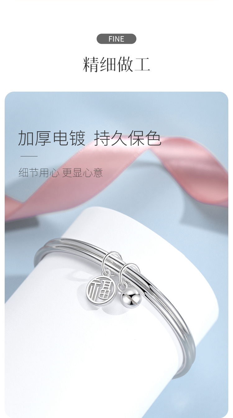 Winy9999足银福菱手镯送女友闺蜜节日生日礼物