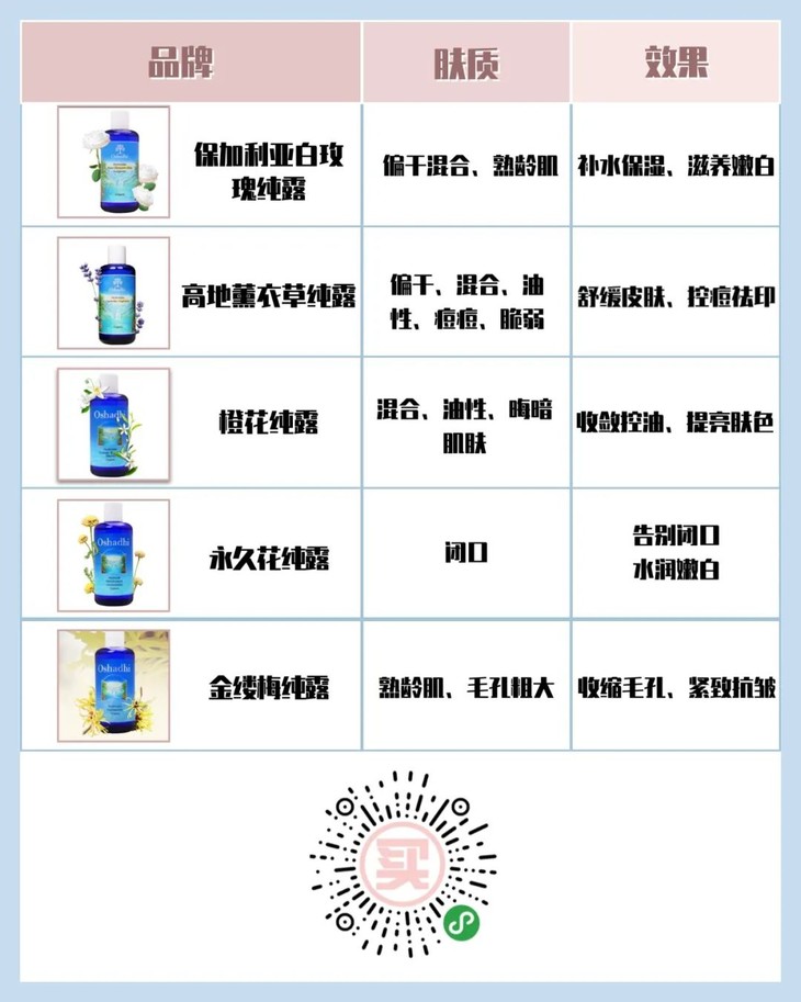 精选保加利亚珍稀白玫瑰和橙花植物,气味清新淡雅,特别适合熟龄和缺水性肌肤,为肌肤补充大量的的水分,多方位缓解缺水引起的干燥紧绷。橙花纯露对肌肤的提亮效果堪比玫瑰,比较适合油性和敏感脆弱的肌肤。