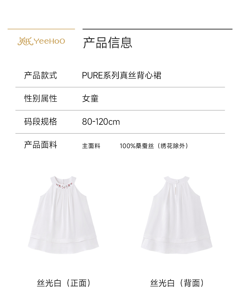 【高定系列】英氏儿童连衣裙女童夏季背心裙桑蚕丝柔软舒适公主裙