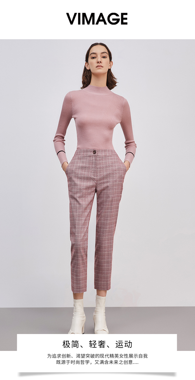 VIMAGE纬漫纪女装春夏款通勤时尚百搭职业小脚九分裤裤V1305941