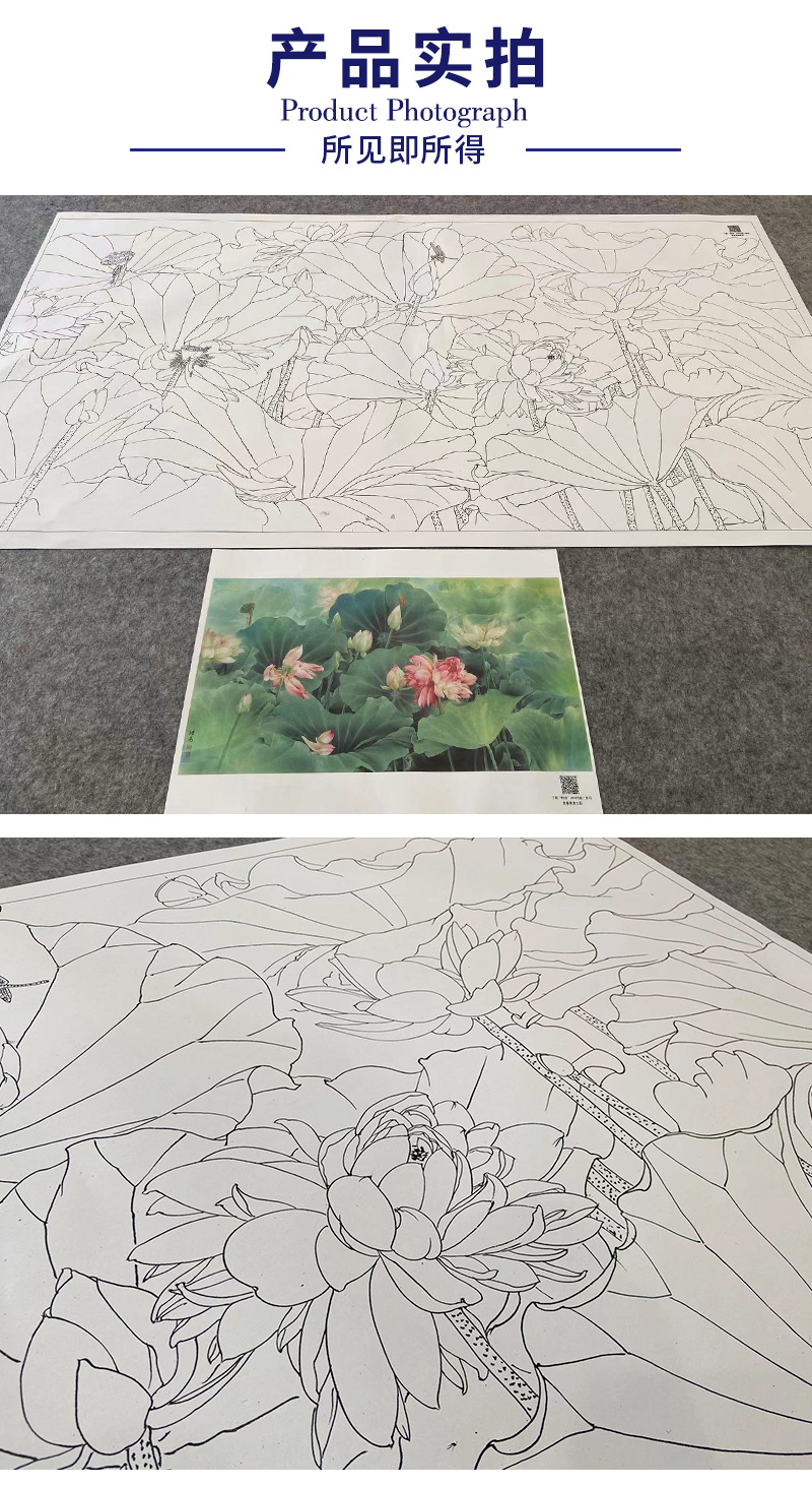【大彩图】邹传安横幅工笔画白描底稿《荷花》临摹勾线花鸟线稿HN18