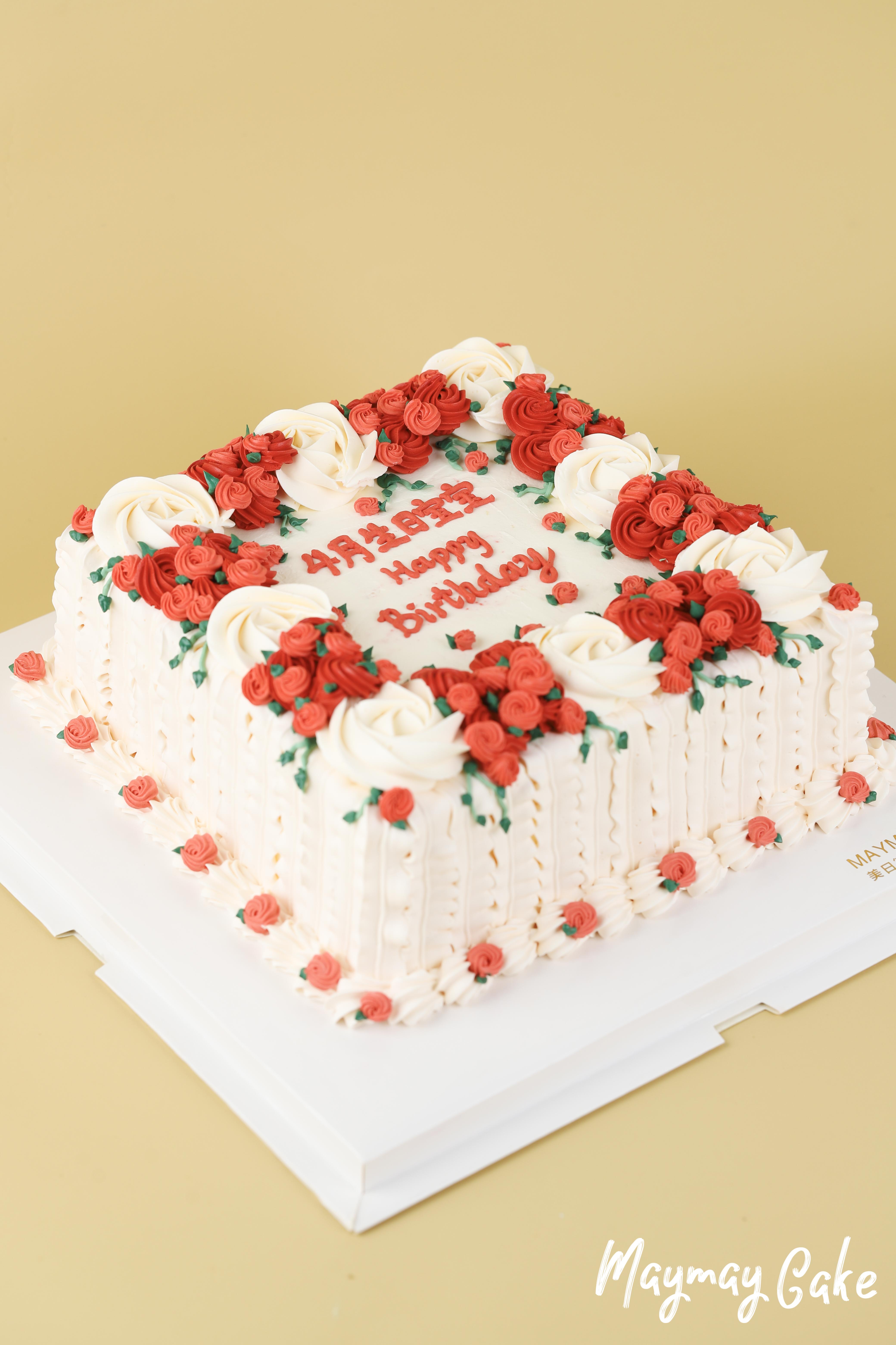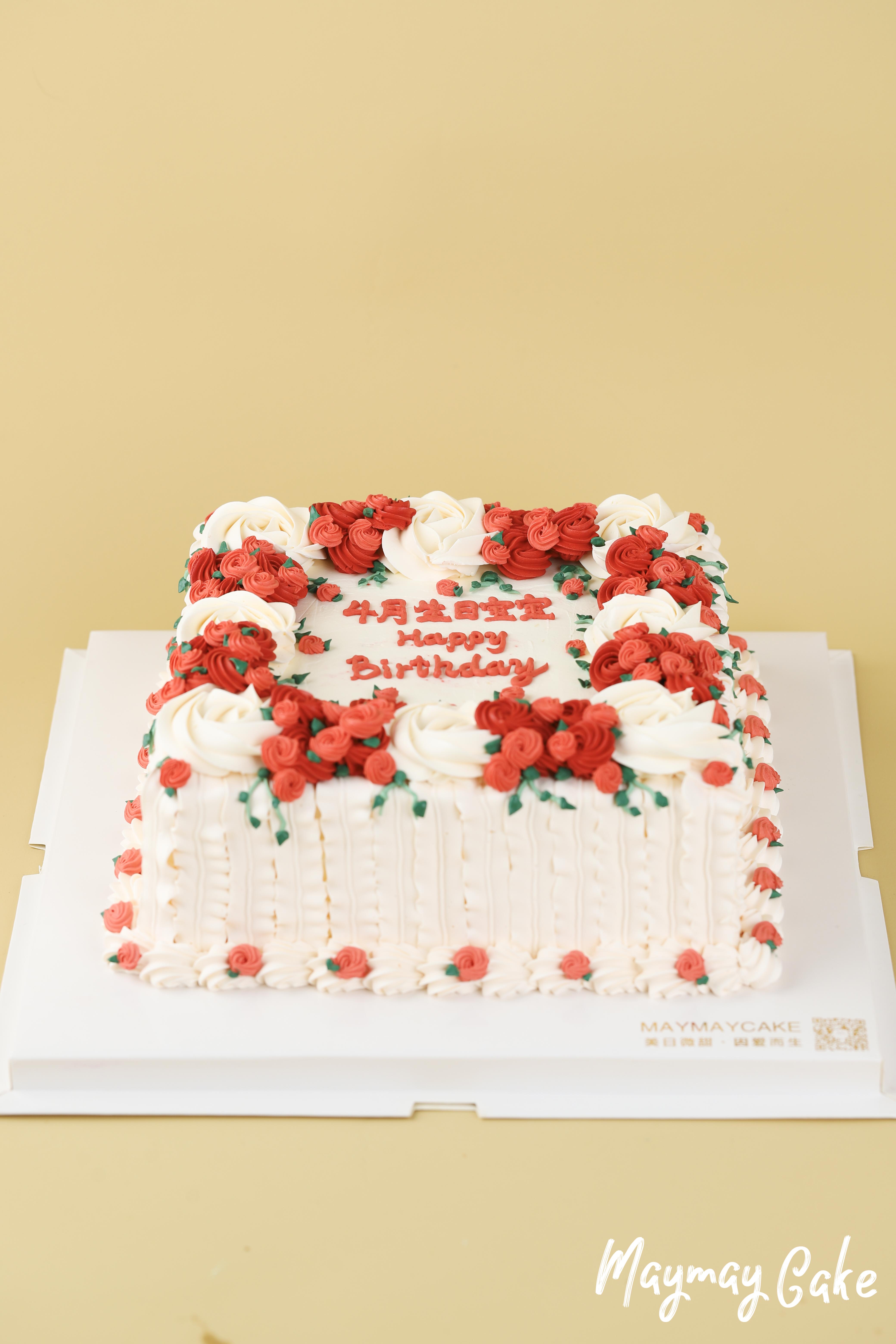 【4124】方形手绘花·周岁/年蛋糕(送小朋友 周岁 百天 公司周年庆 开业典礼)