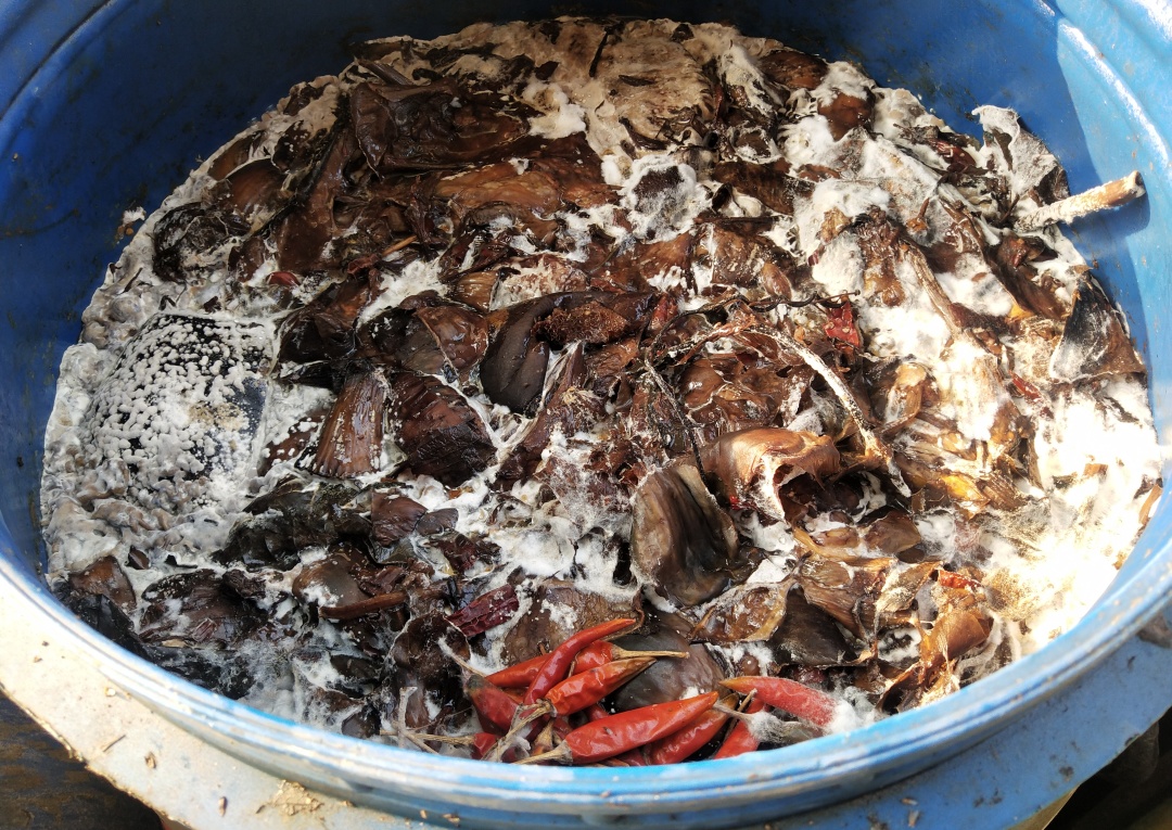 施肥:从沼气池淋水肥,收集次果和柚子皮自制柚子酵素、花生麸、鱼和糖蜜发酵液体肥,牛粪和玉米杆制做堆肥。