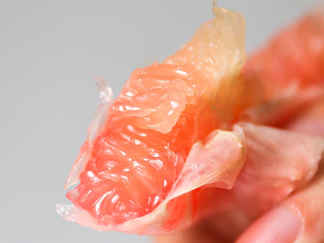 青柚果肉晶莹脆嫩,皮薄肉厚,化渣率高,汁多,较甜酸味较少,食之清香盈口。口感比一般柚子脆嫩许多,往冰箱里放过之后食用风味更佳,吃完嘴巴里会有十分清爽的感觉。