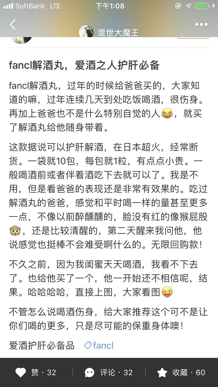 喝酒不伤身 应酬必备 Fancl解酒丸10粒独立包装适合饮酒前或者饮酒后服用