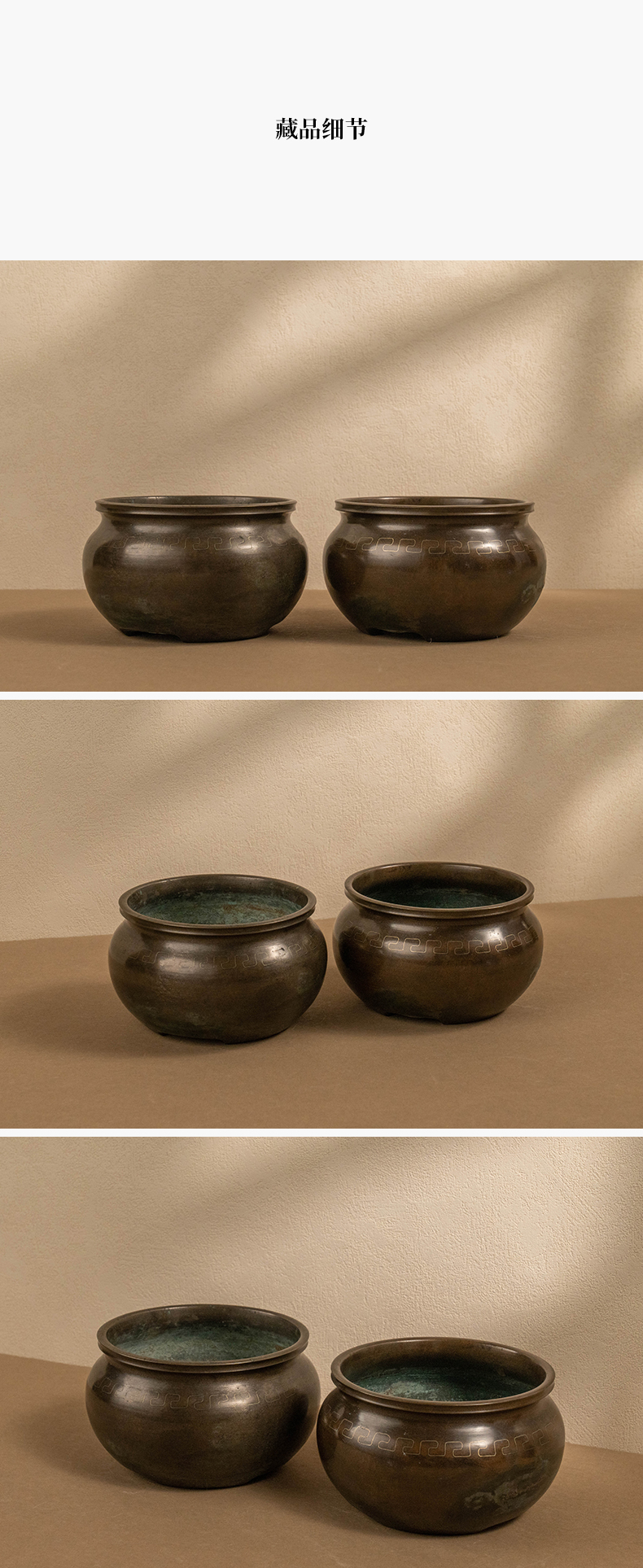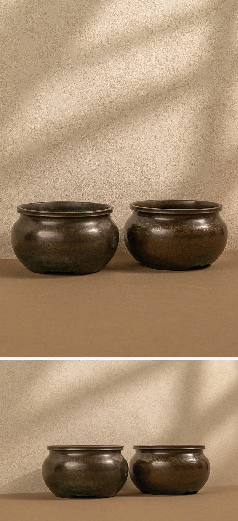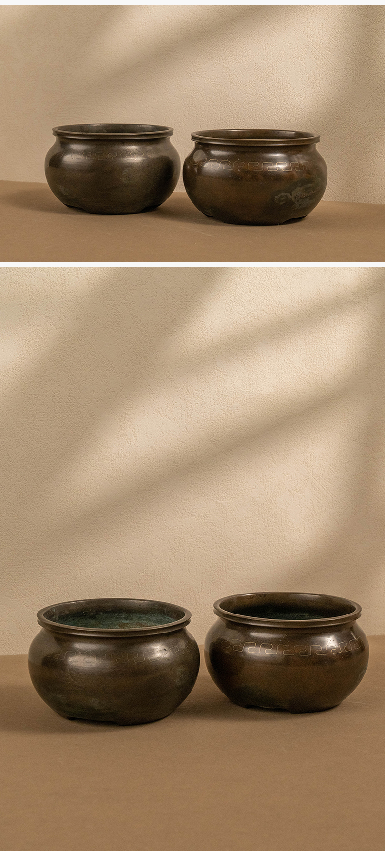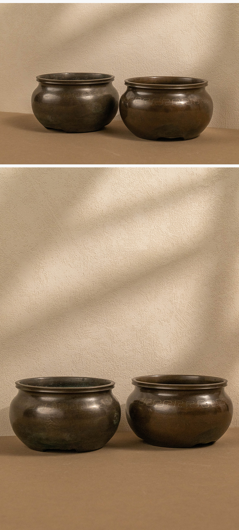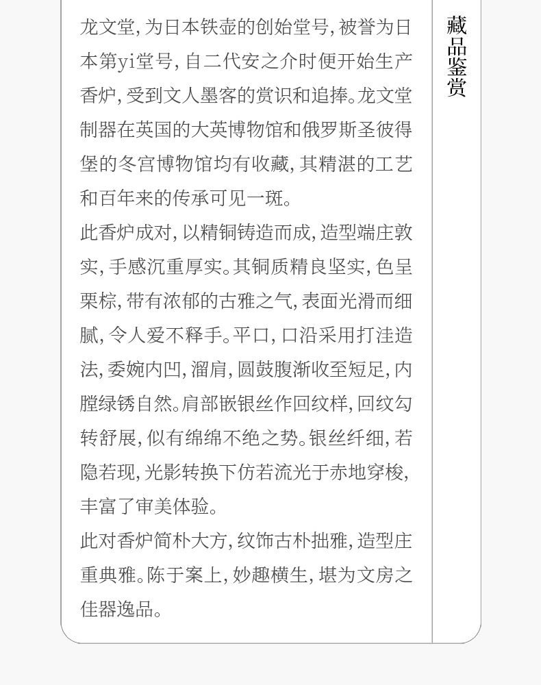 龙文堂铜嵌银丝回纹香炉(一对)