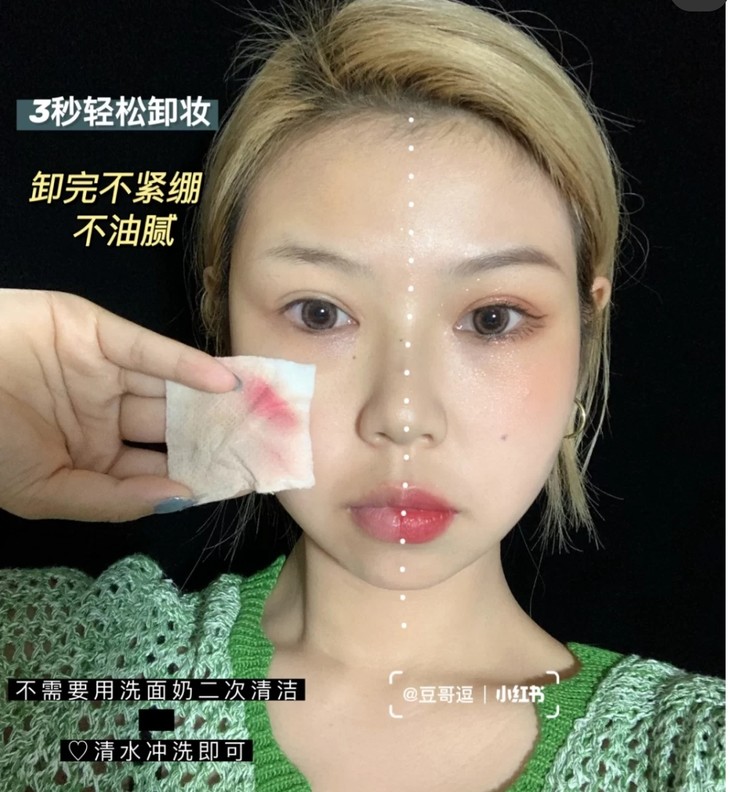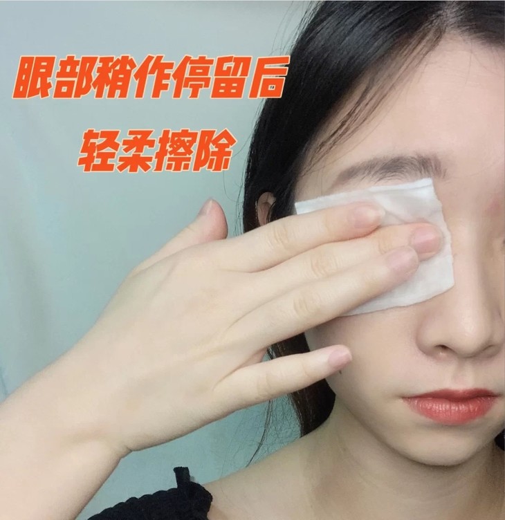 然后敷在需要卸妆的位置,等待几秒钟后再向外擦拭