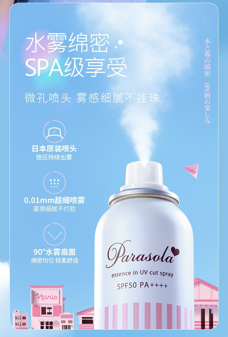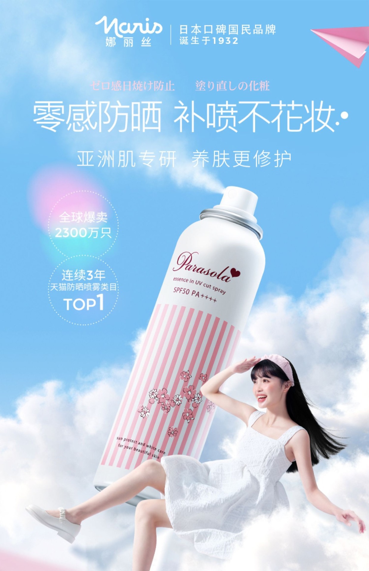 「防水防汗!清爽不花妆 」Naris娜丽丝防晒霜喷雾140ml,防水防汗!隔离紫外线 spf50+, 清爽不化妆 水润防晒喷雾!男女面部全身春夏防紫外线军训旅行海边