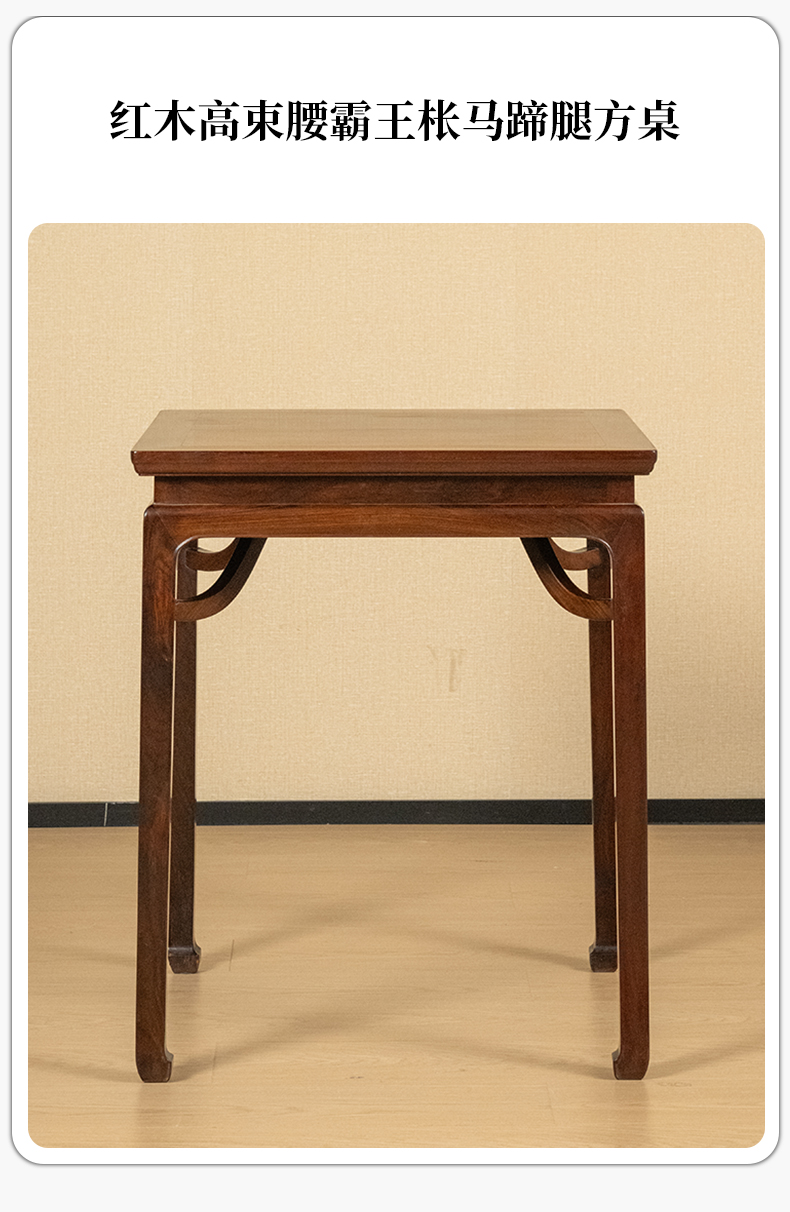 红木高束腰霸王枨马蹄腿方桌