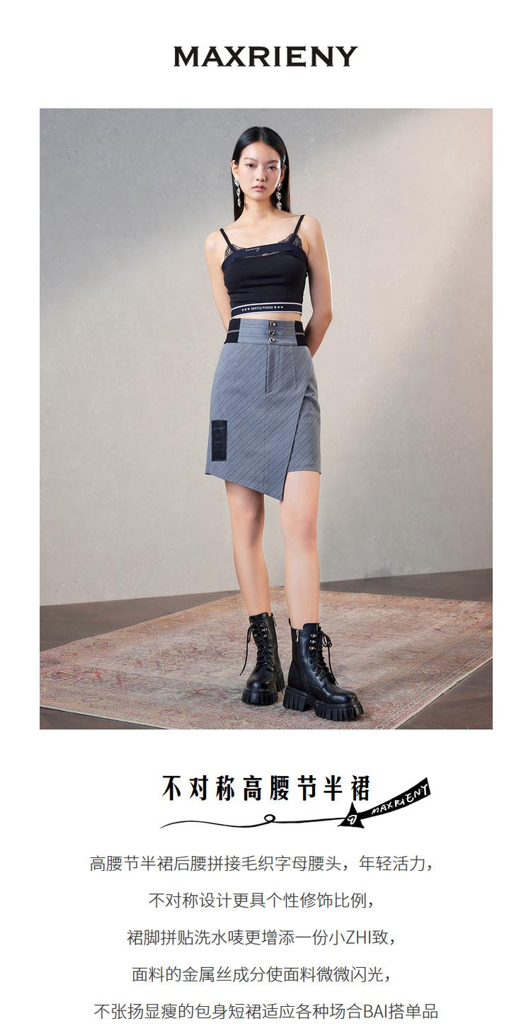 MAXRIENY丨高腰半身裙女2022春季设计感显瘦拼接包臀裙洋气短裙(货号:MS87SK009)