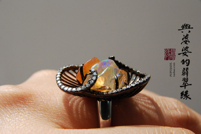 18K乌金白金火欧珀戒指