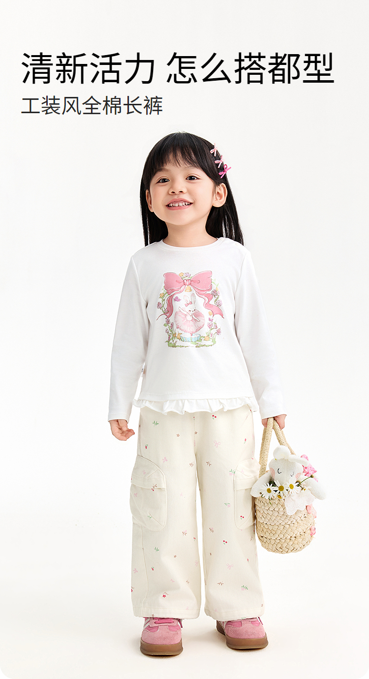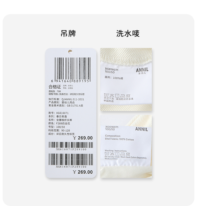 【实体店同款】女童全腰梭织长裤春季新款安奈儿童装XG616071