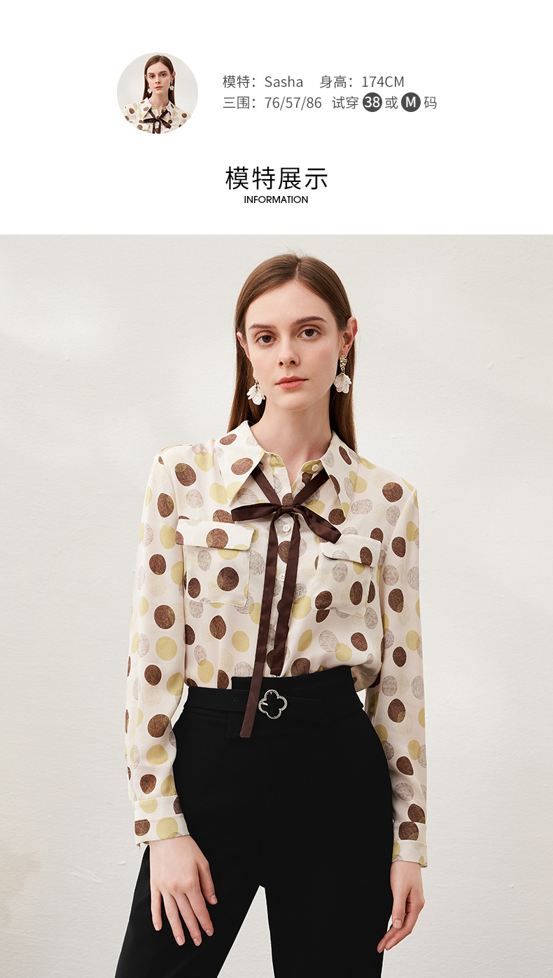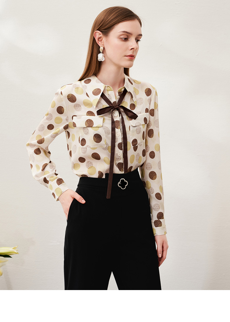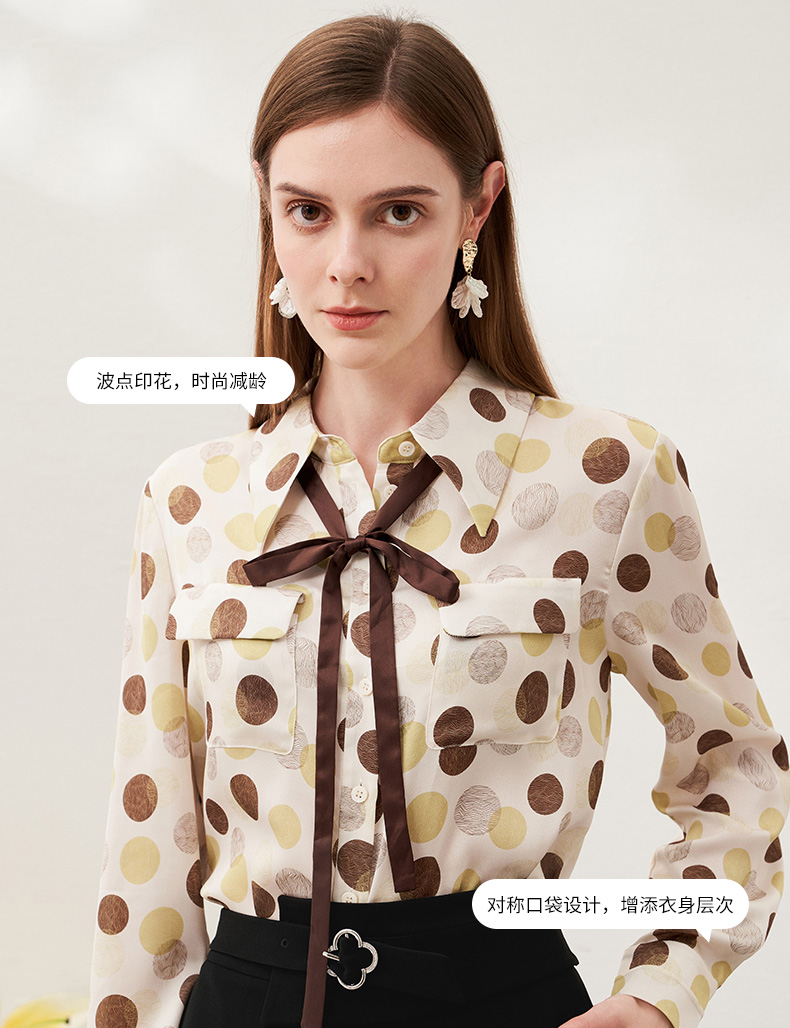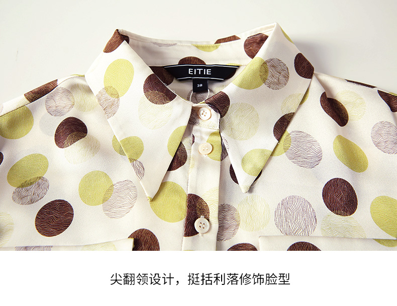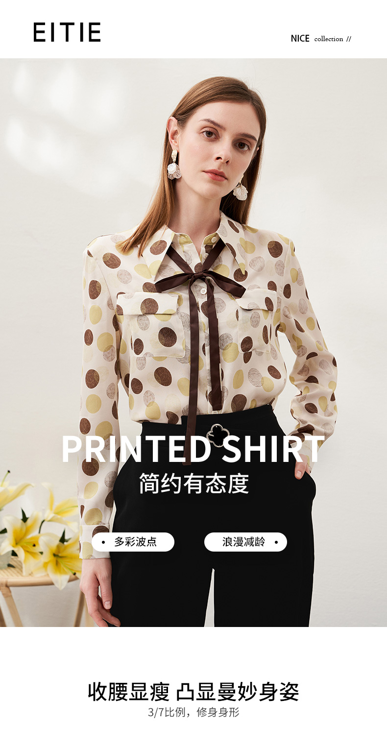 EITIE爱特爱春季新款洋气职业干练显瘦系带几何印花衬衫上衣6909607