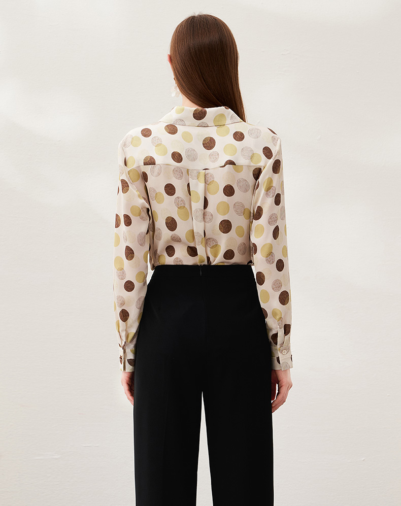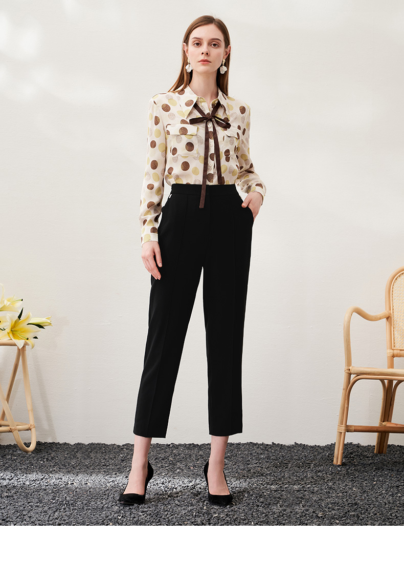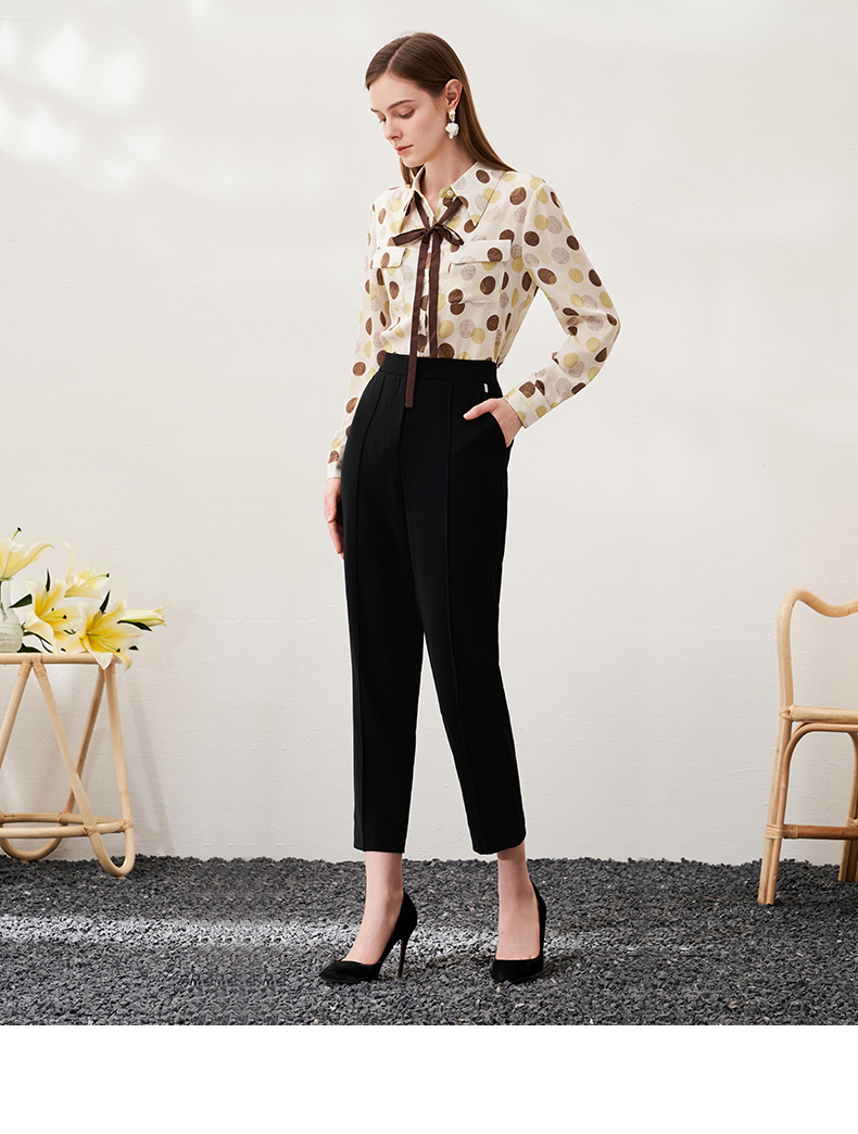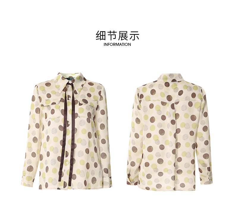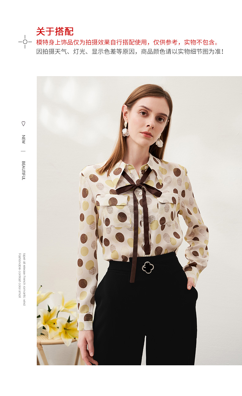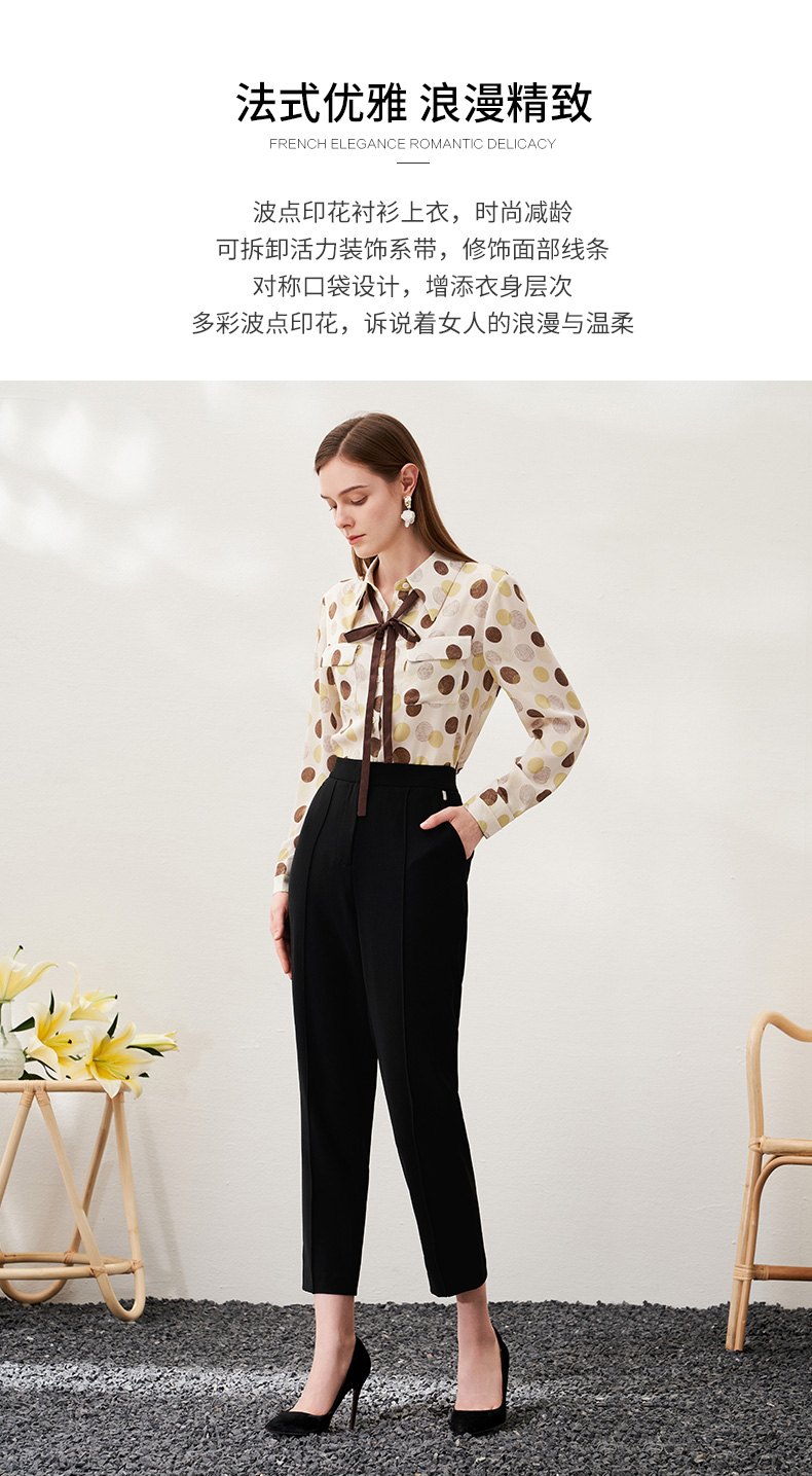 EITIE爱特爱春季新款洋气职业干练显瘦系带几何印花衬衫上衣6909607