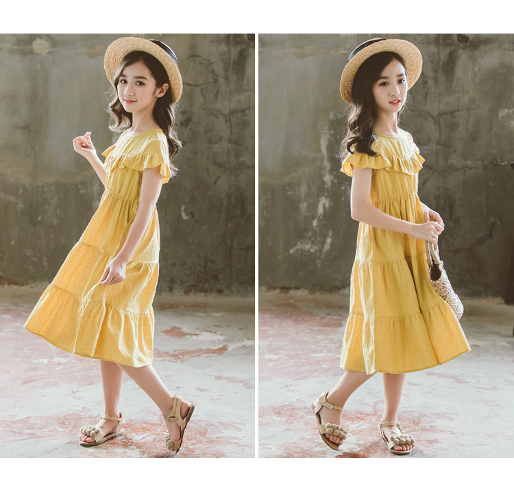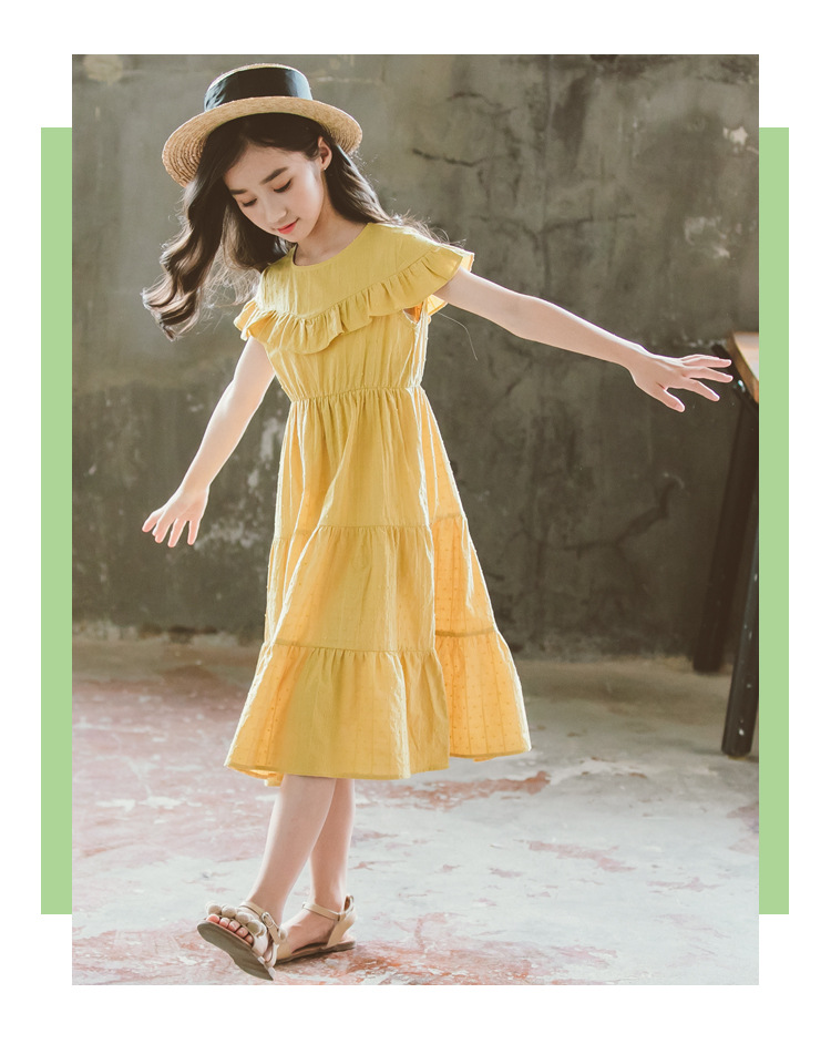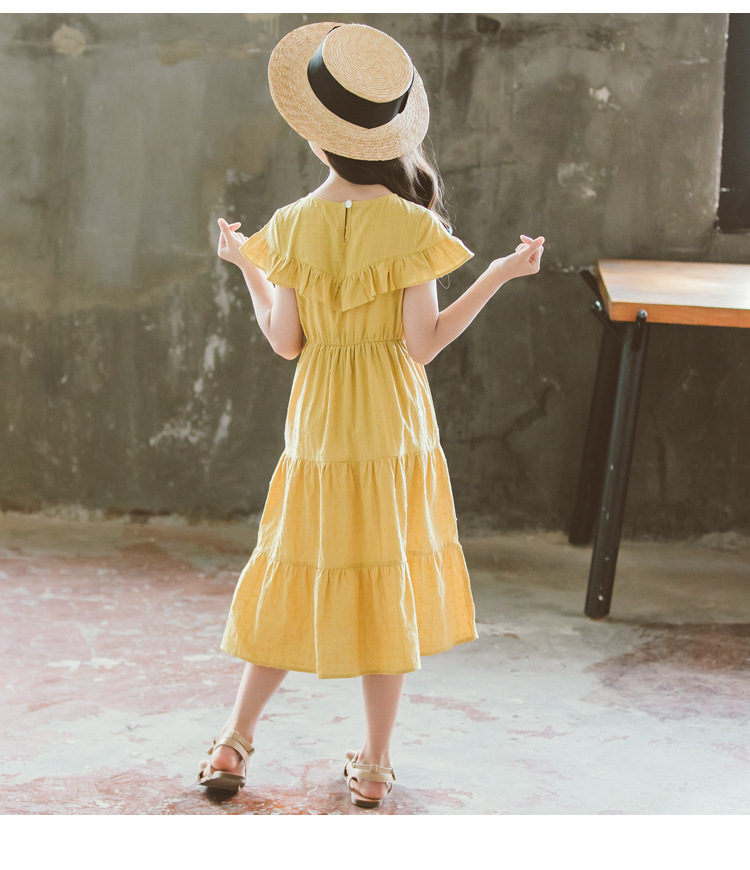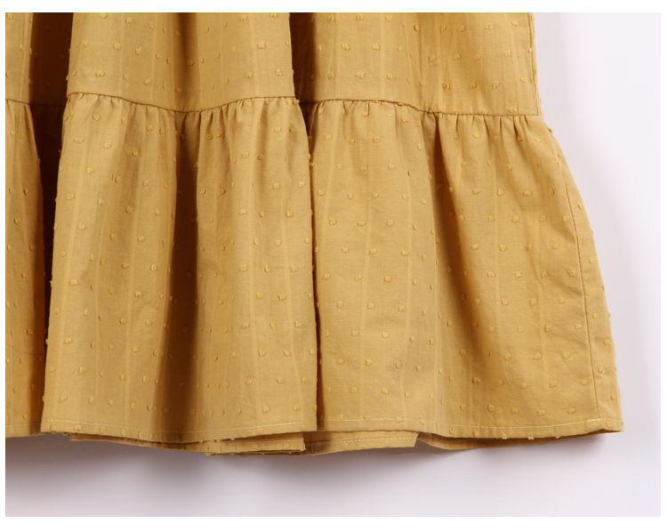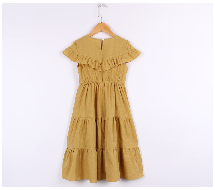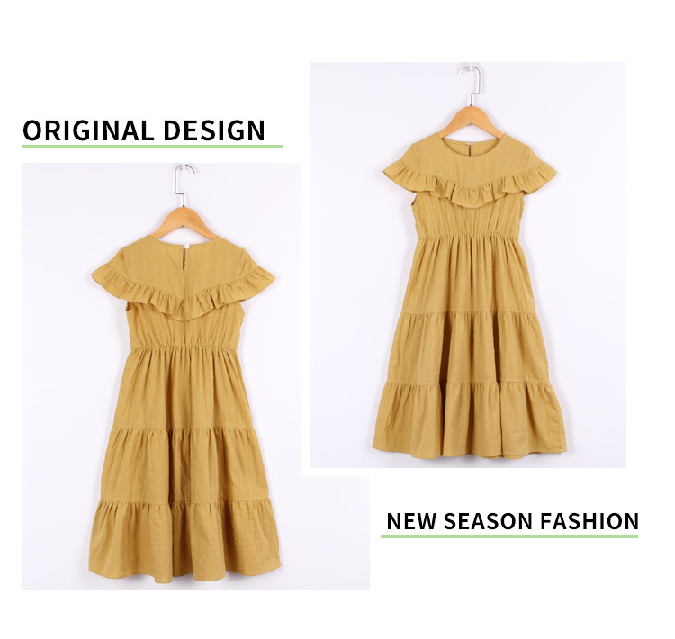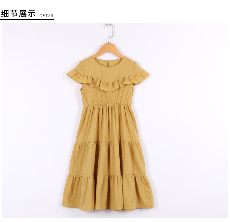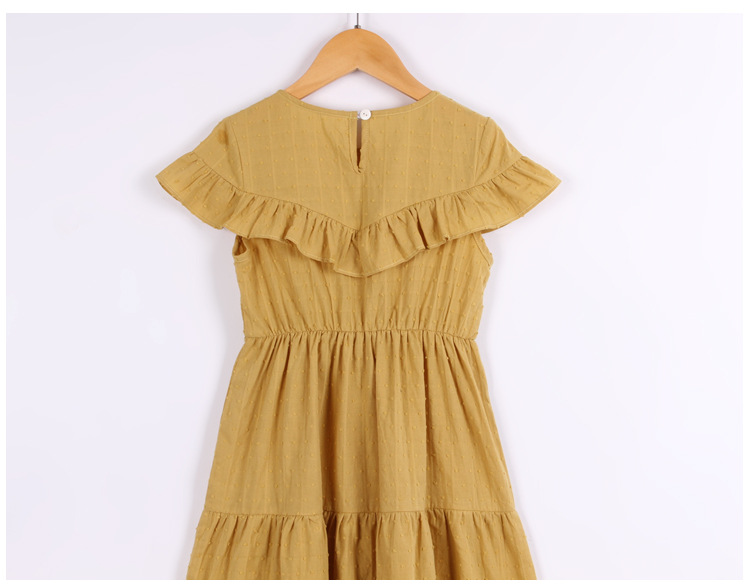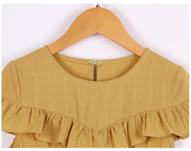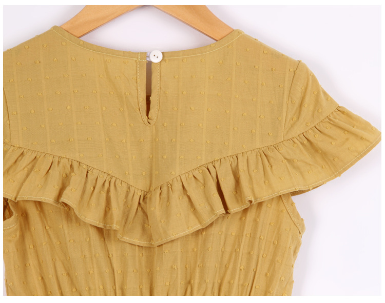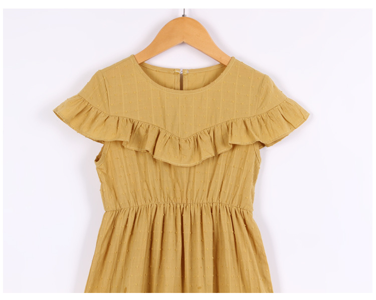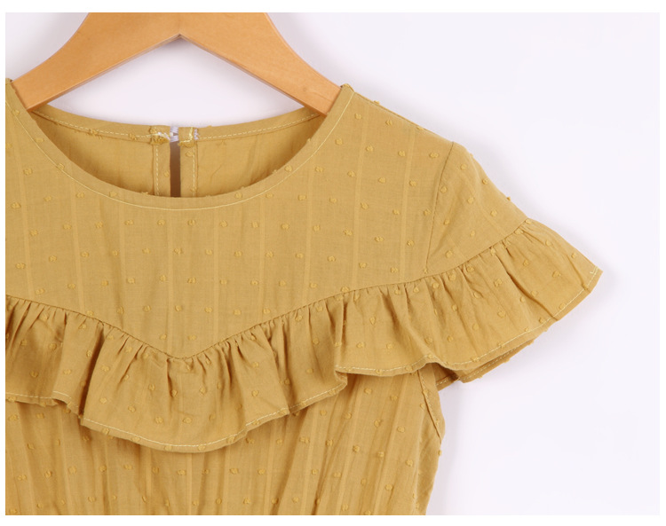 CHT-韩版短袖暗纹提花棉布圆领荷叶边连衣裙