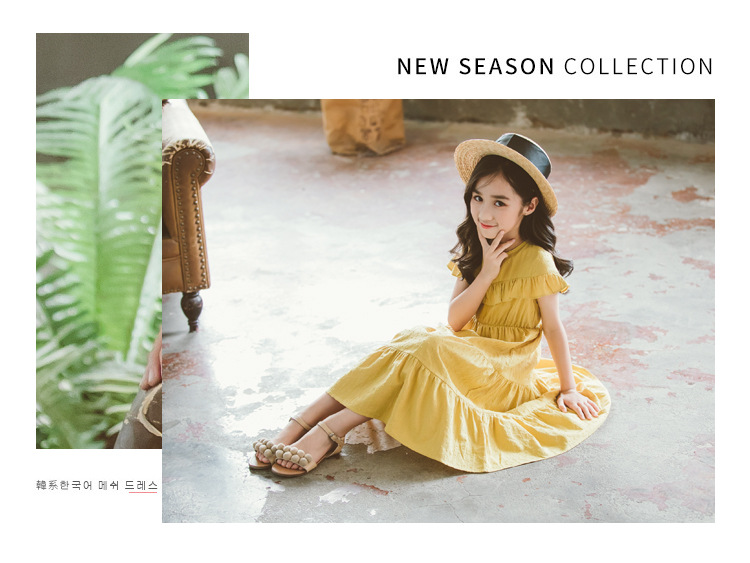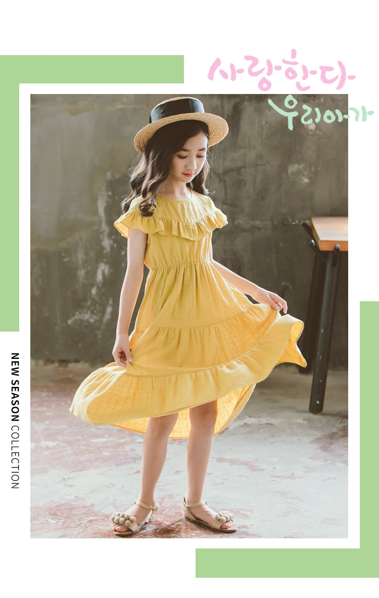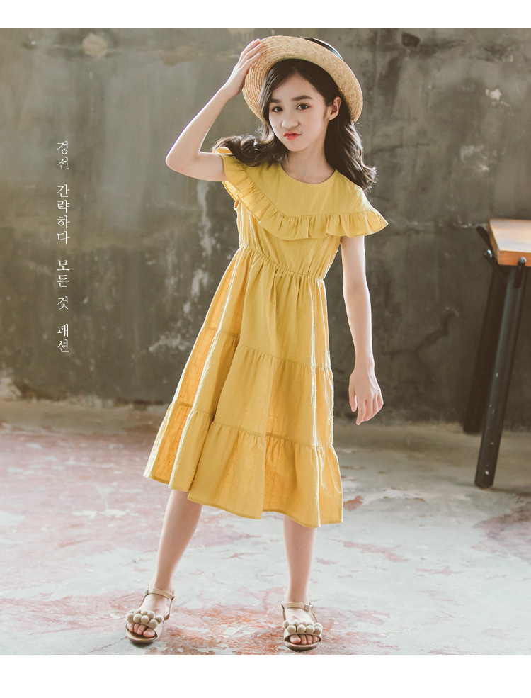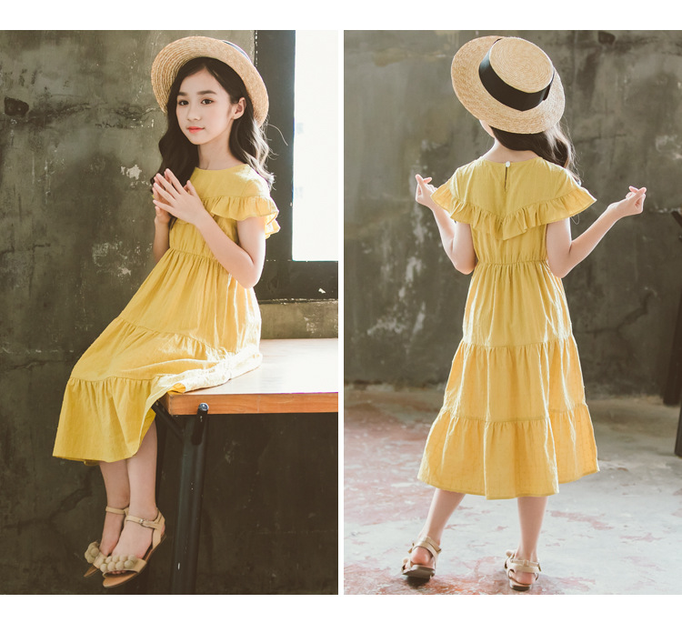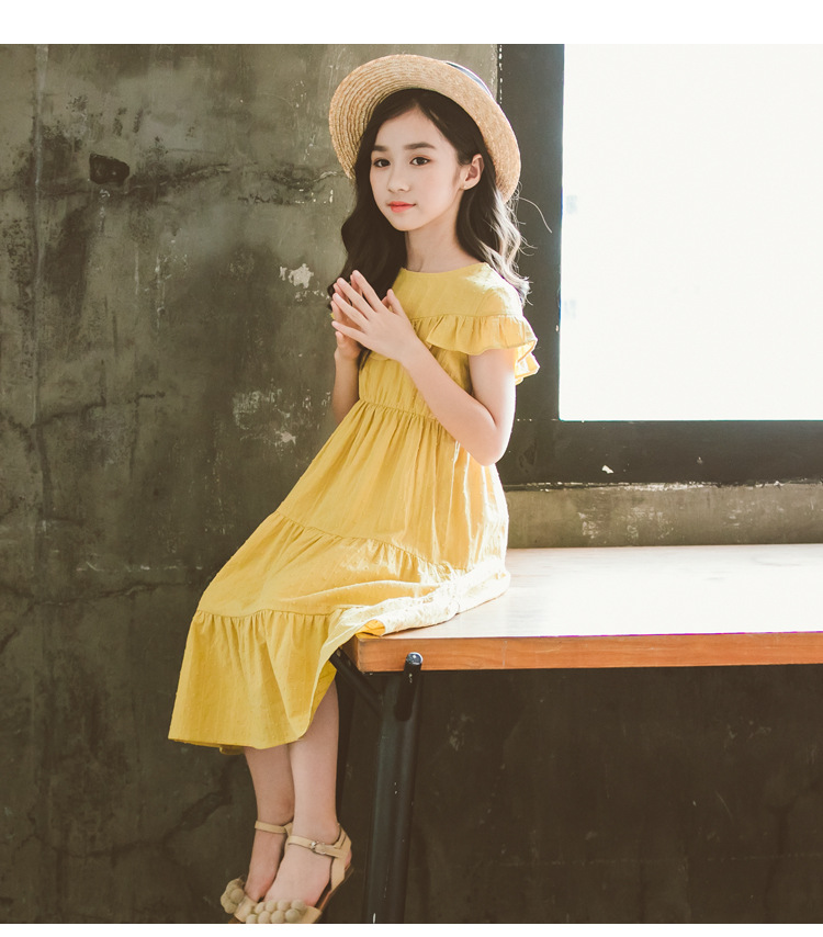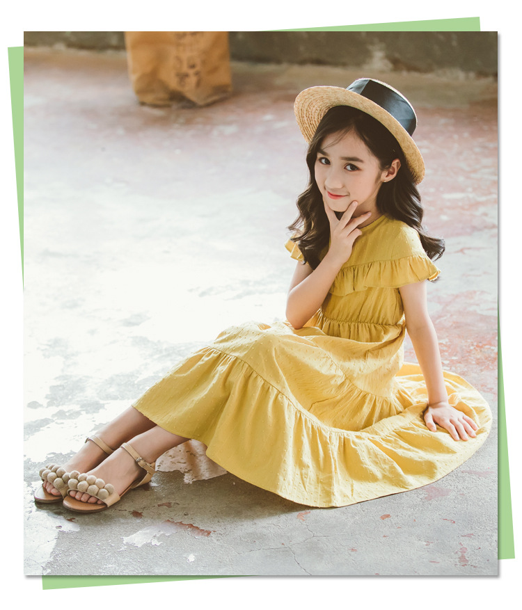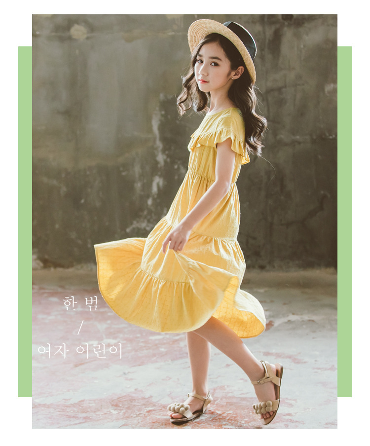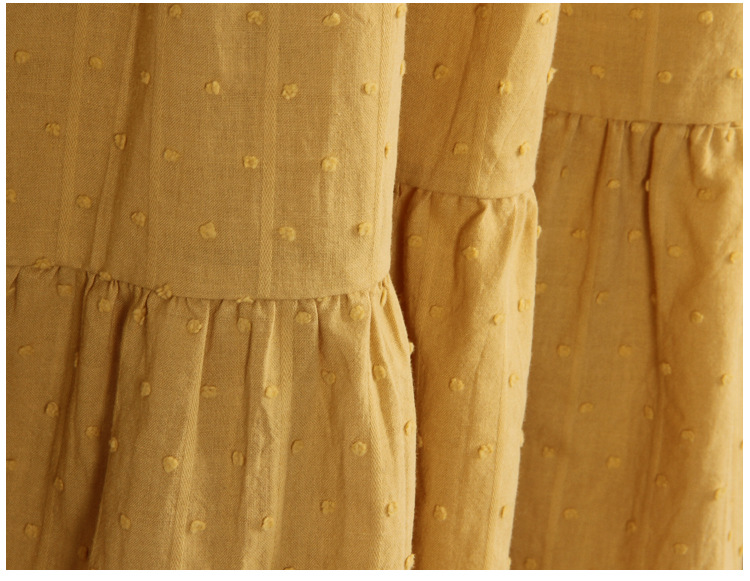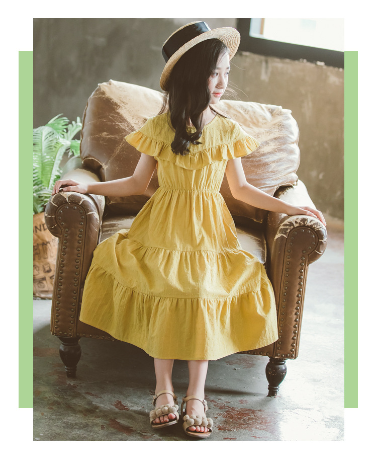 CHT-韩版短袖暗纹提花棉布圆领荷叶边连衣裙