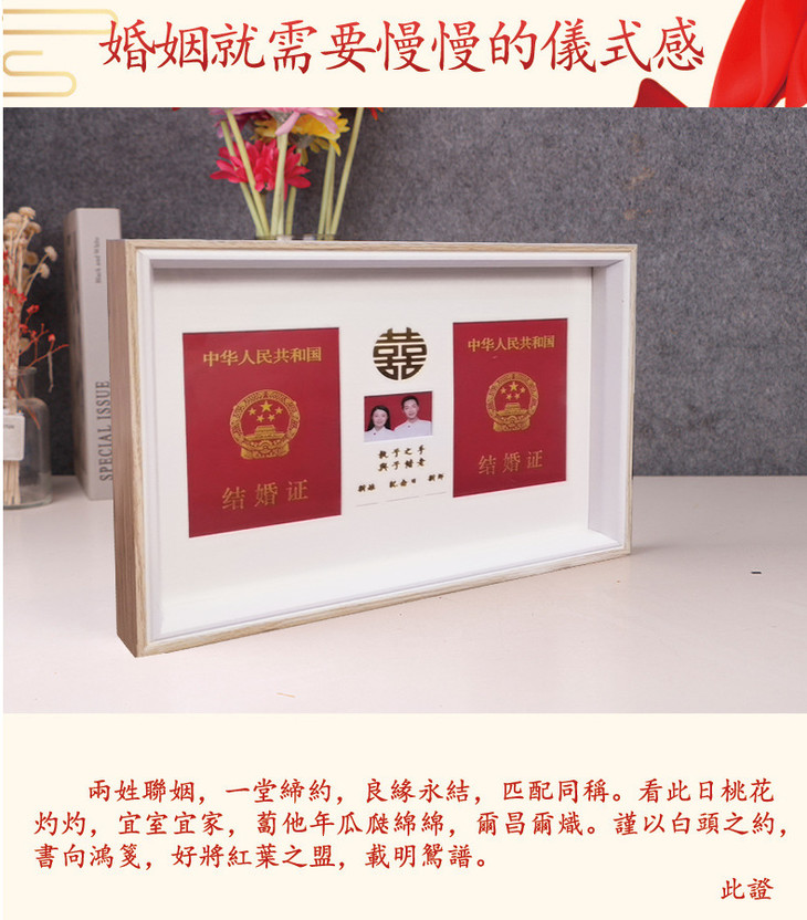 情侣夫妻相框 相册 婚姻登记证件收藏相框摆台装饰全家福照