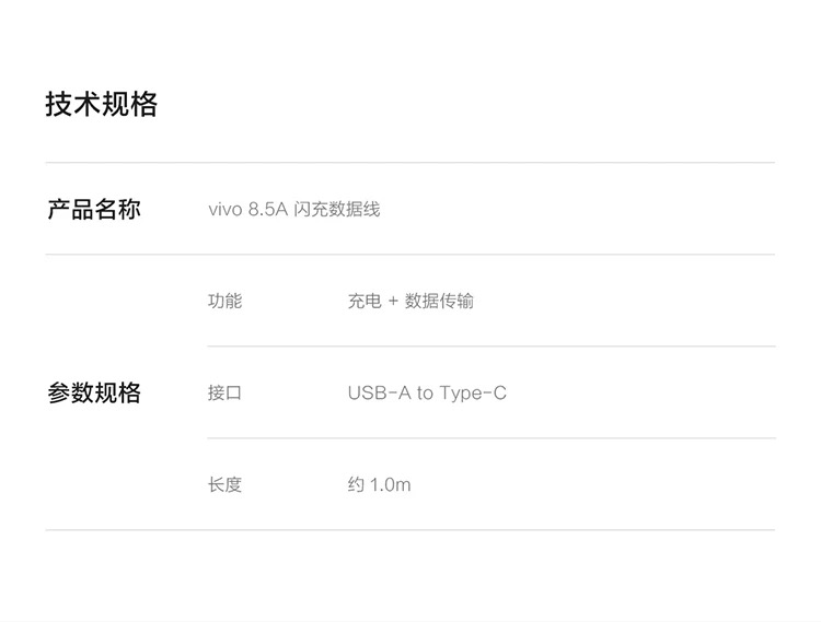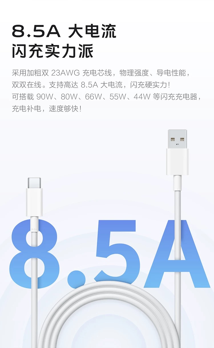 官方正品 VIVO原装8.5A闪充数据线快充不伤机 接口支持120W/80W闪存充电器
