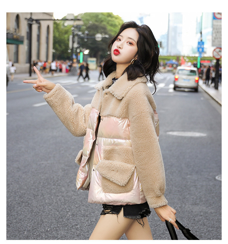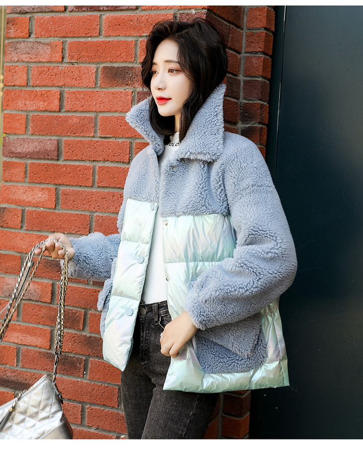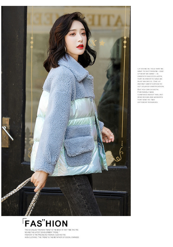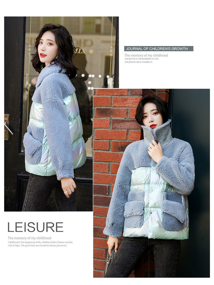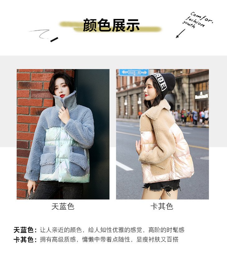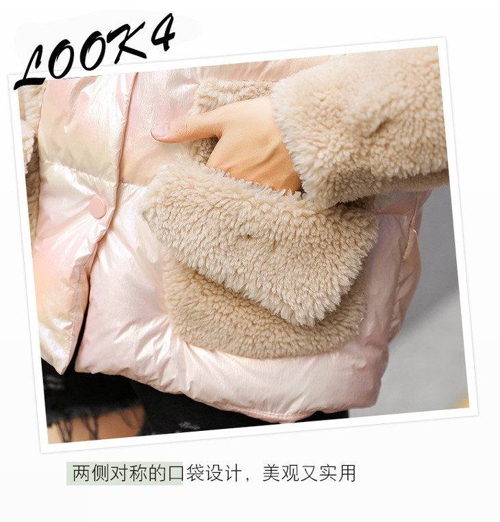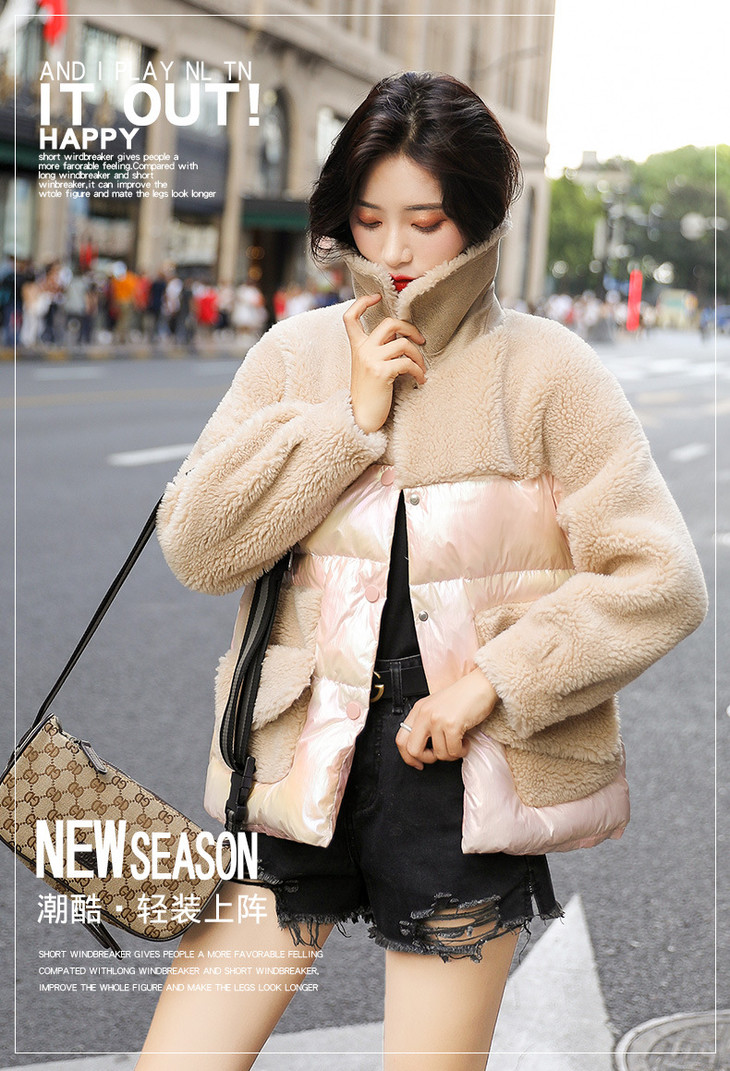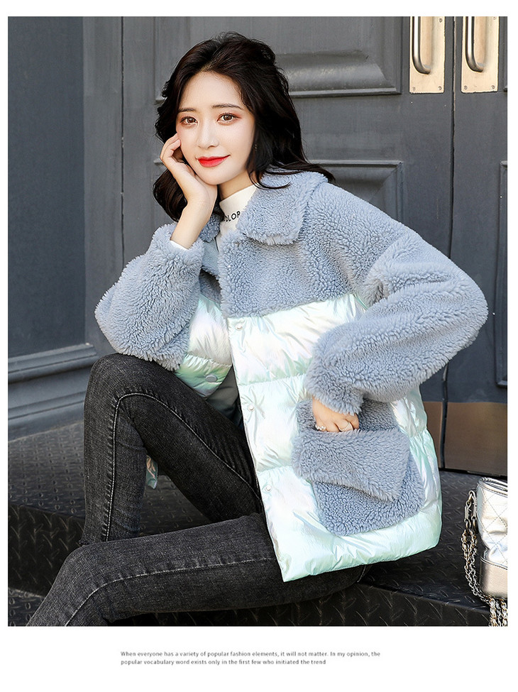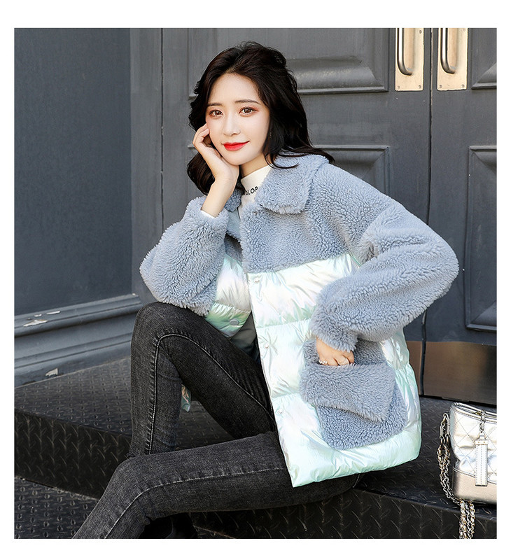 LJY-J9A52-109冬季新款韩版宽松百搭羊羔毛拼接棉衣外套