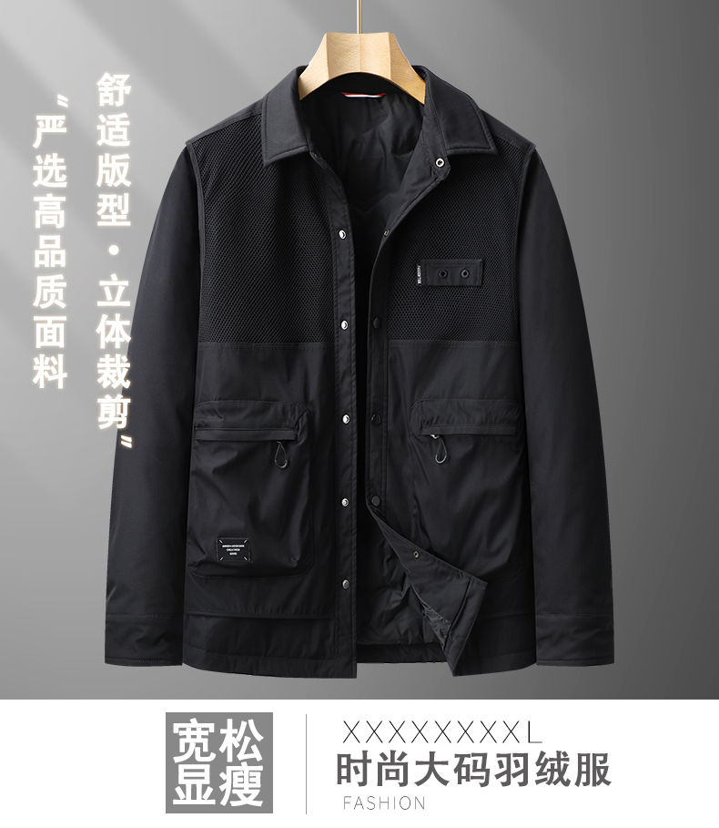【特大码】【新款DPX】大依优型大码潮款翻领工装羽绒服鸭绒外套休闲胖子大码男休闲宽松加肥加大上衣