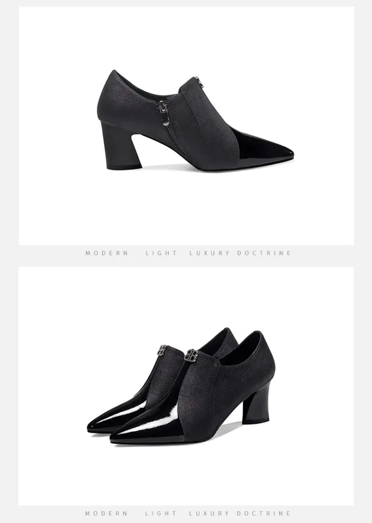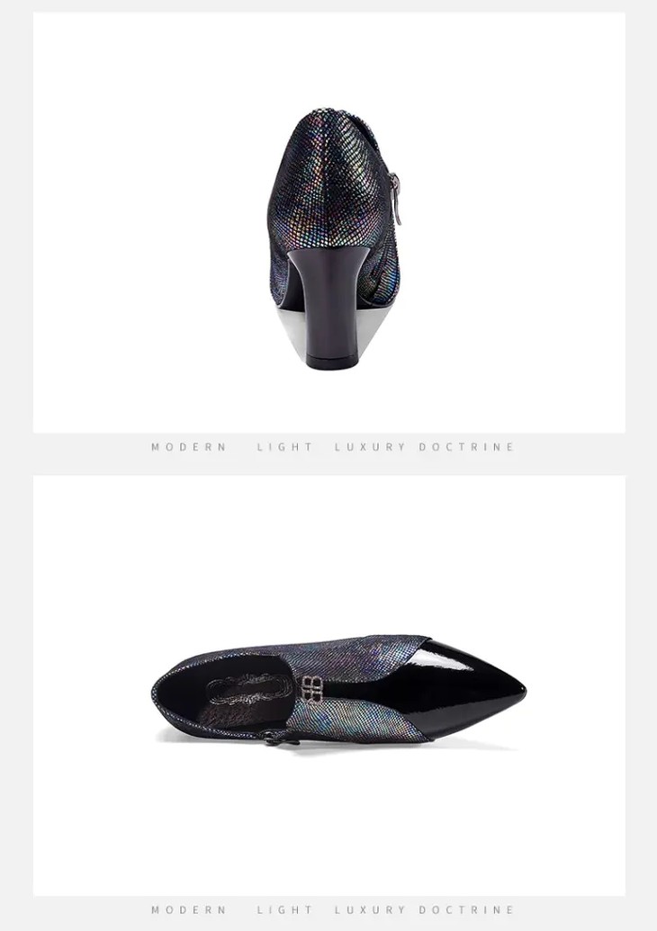 GLS7207真皮粗跟尖头时尚深口单鞋