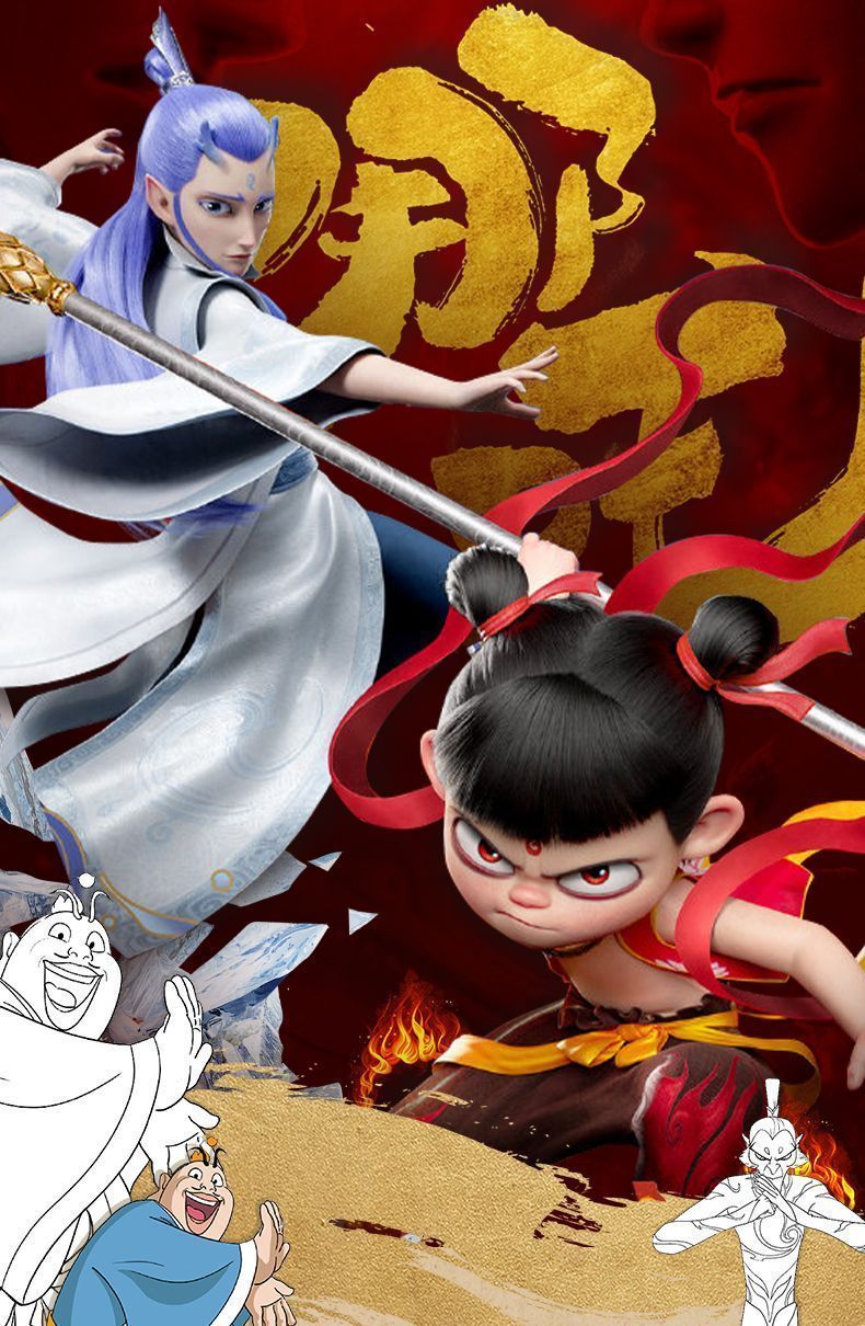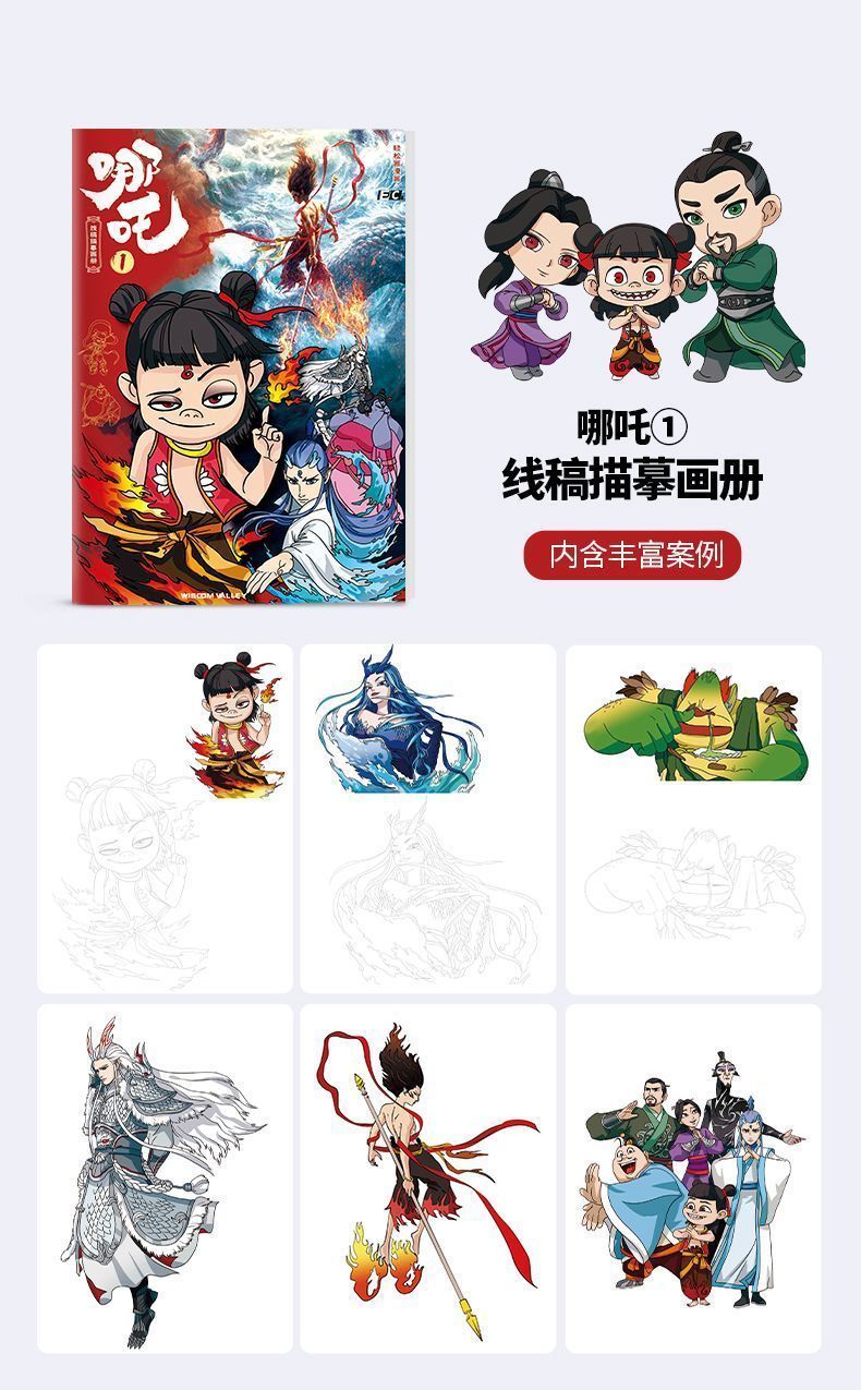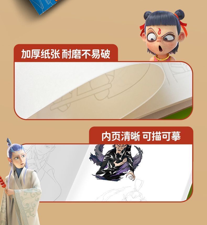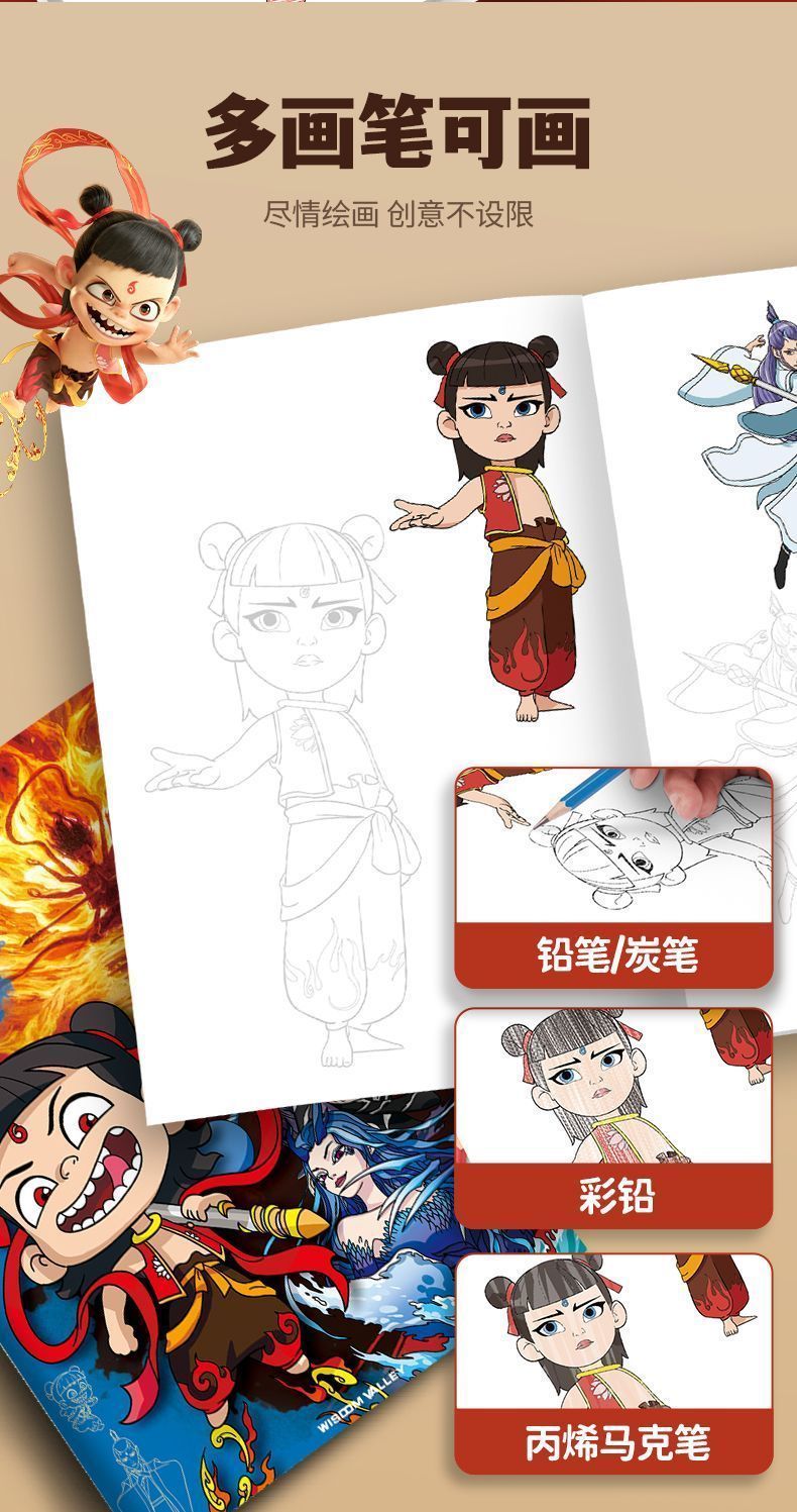 【哪吒全册】两本装送12色马克笔 卡通涂色本画画