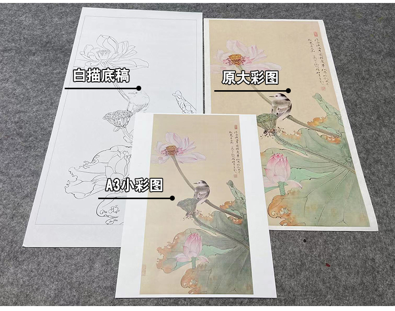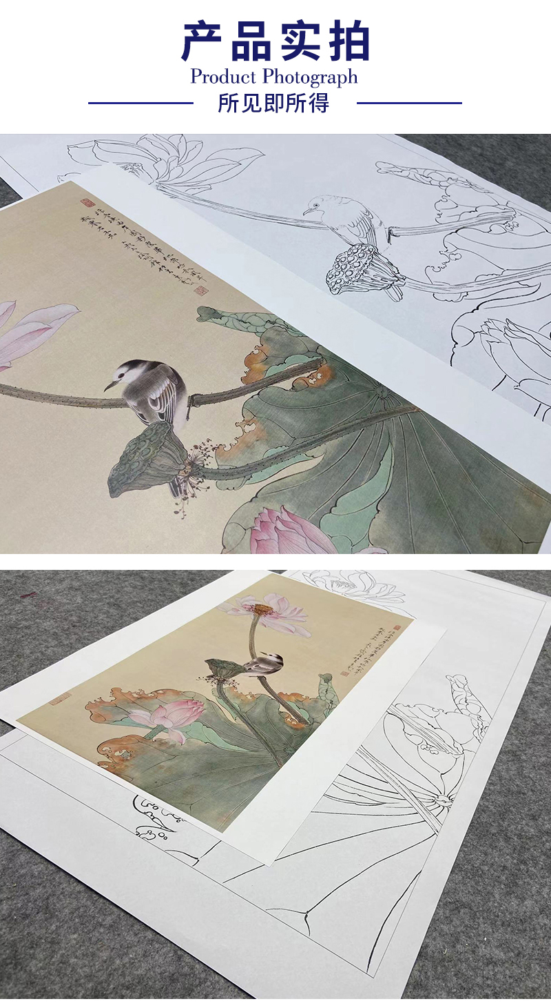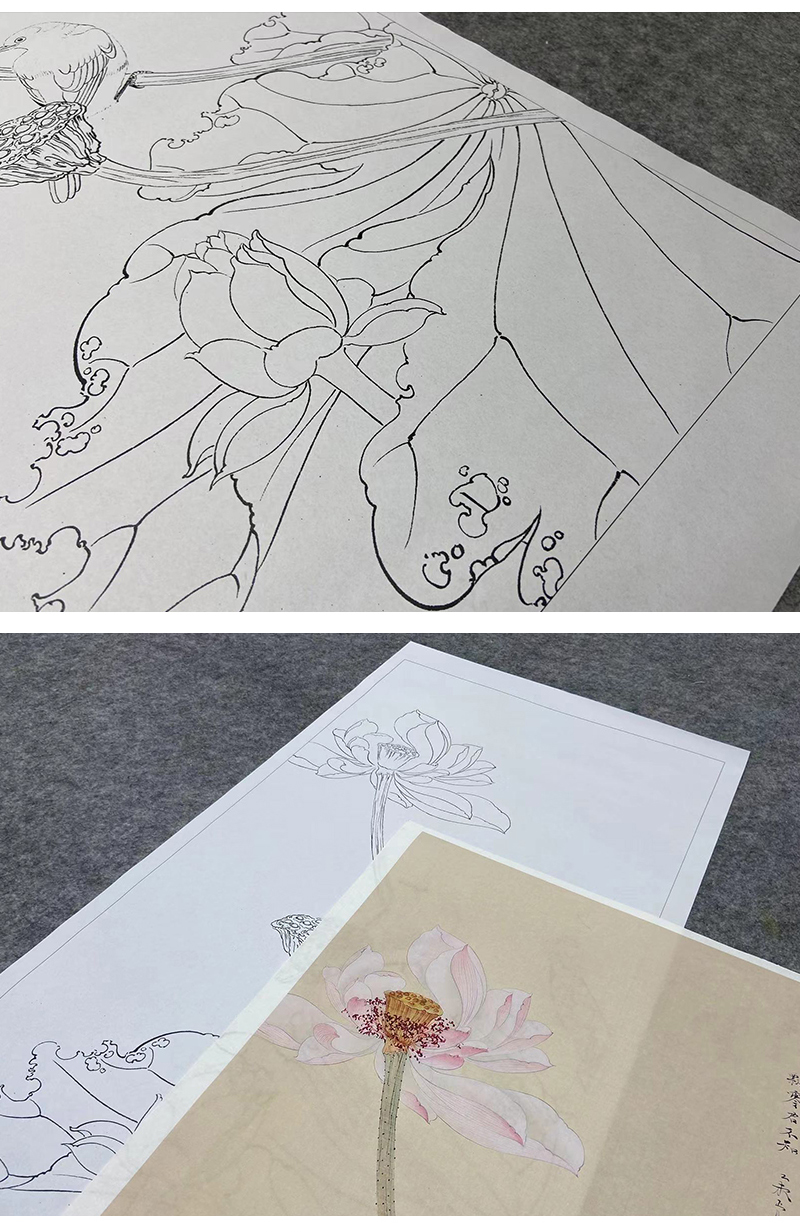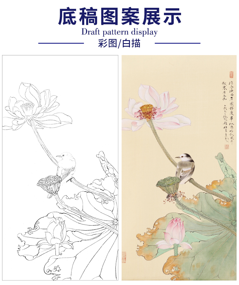 任重工笔画白描底稿荷花《浮香华池图》临摹勾线高清打印稿YL16