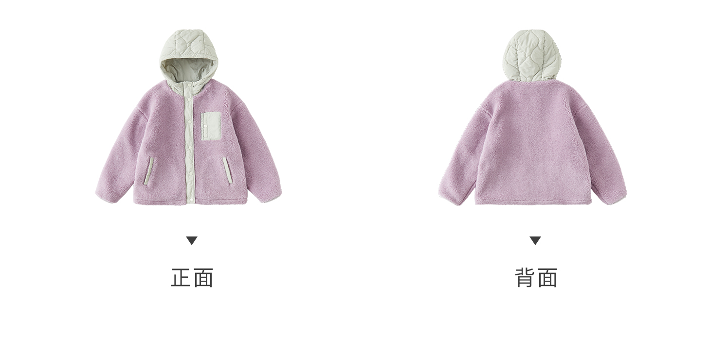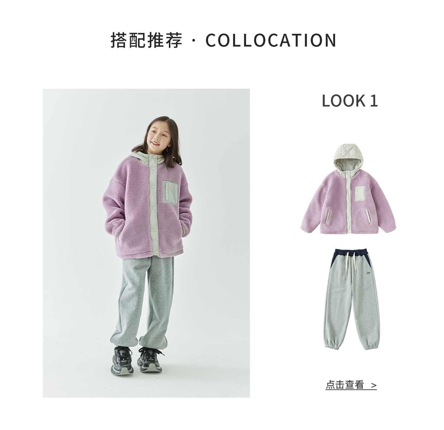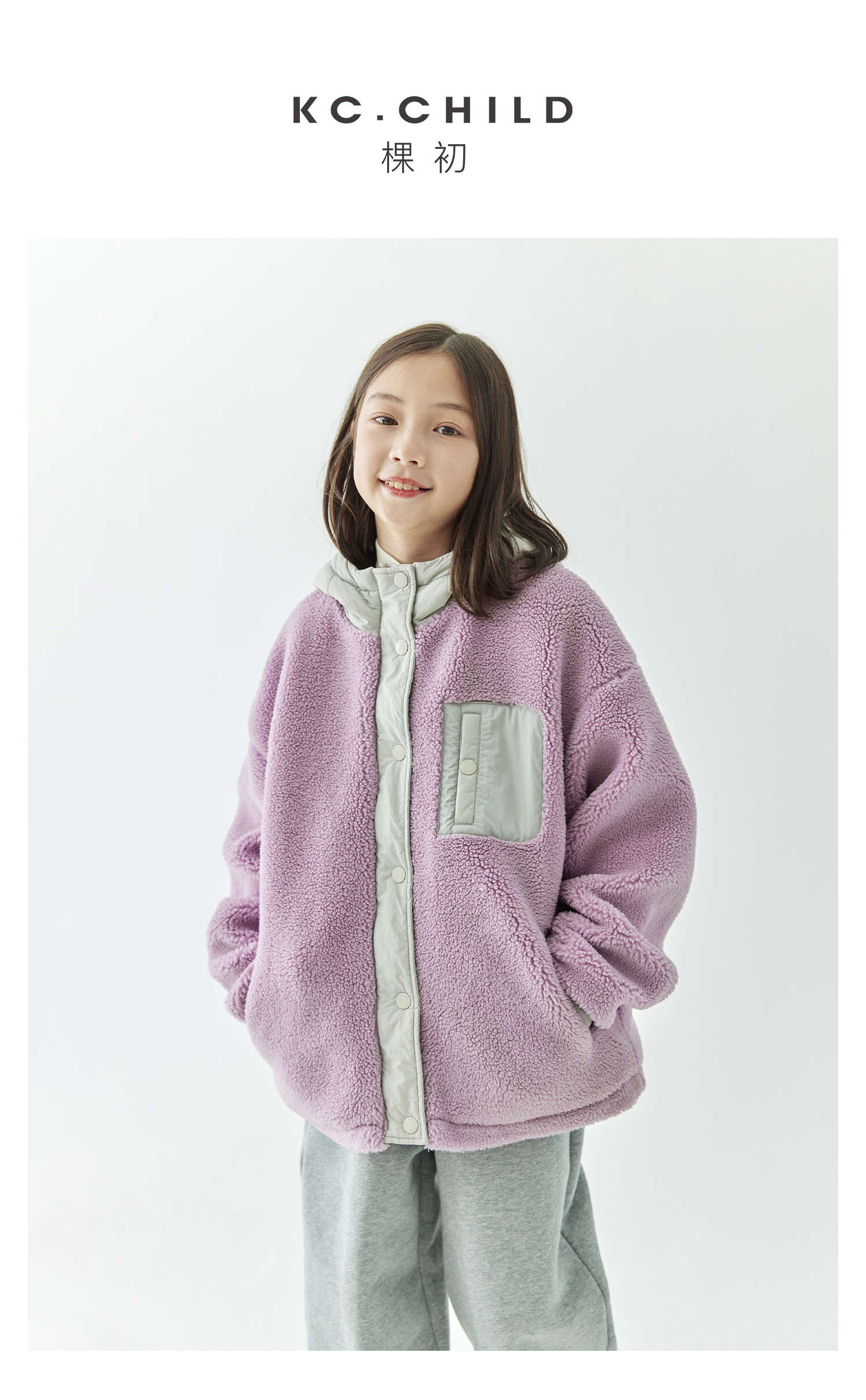 棵初24年冬季新款儿童仿羊羔毛外套亲子撞色拼接保暖宽松连帽上衣