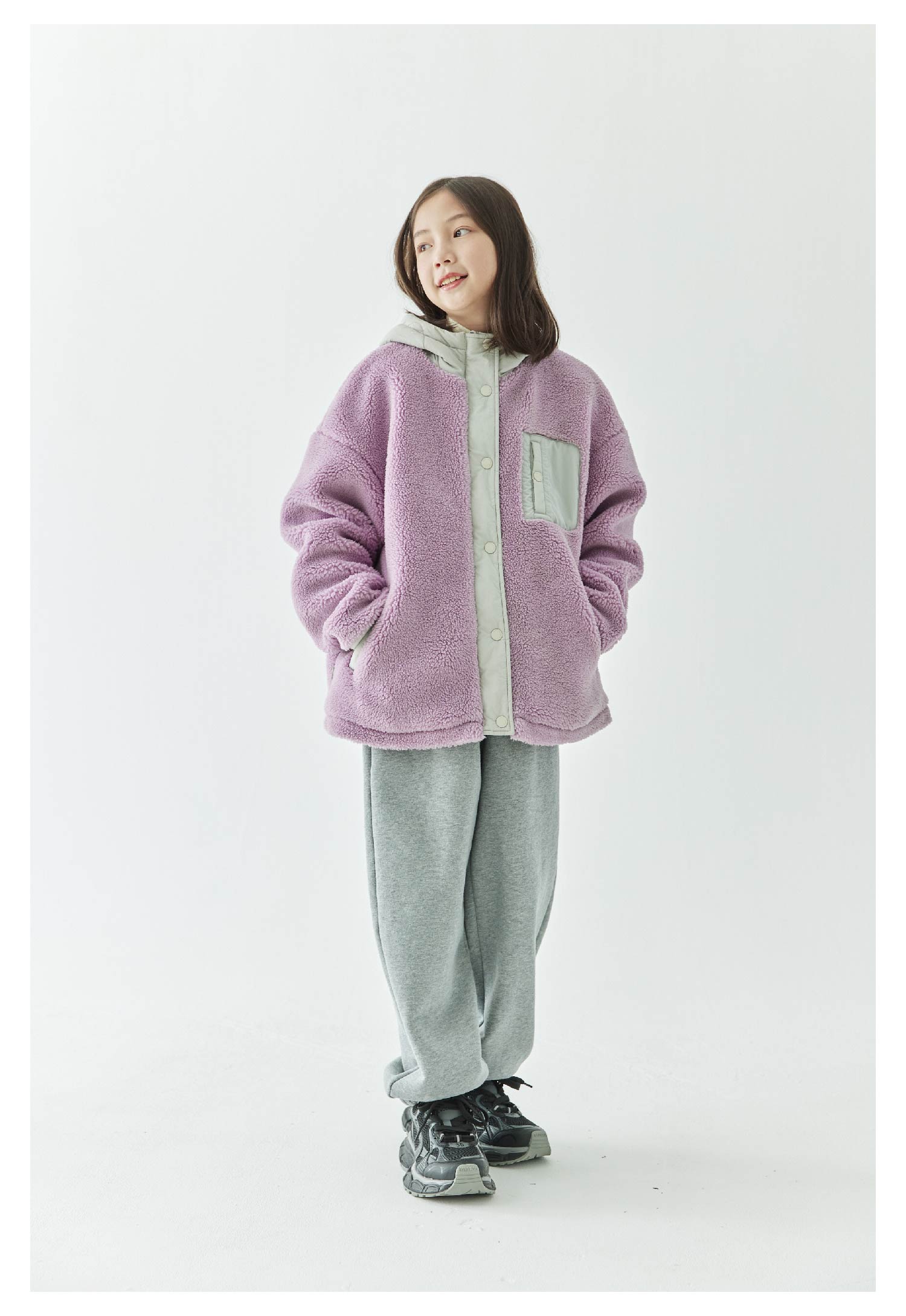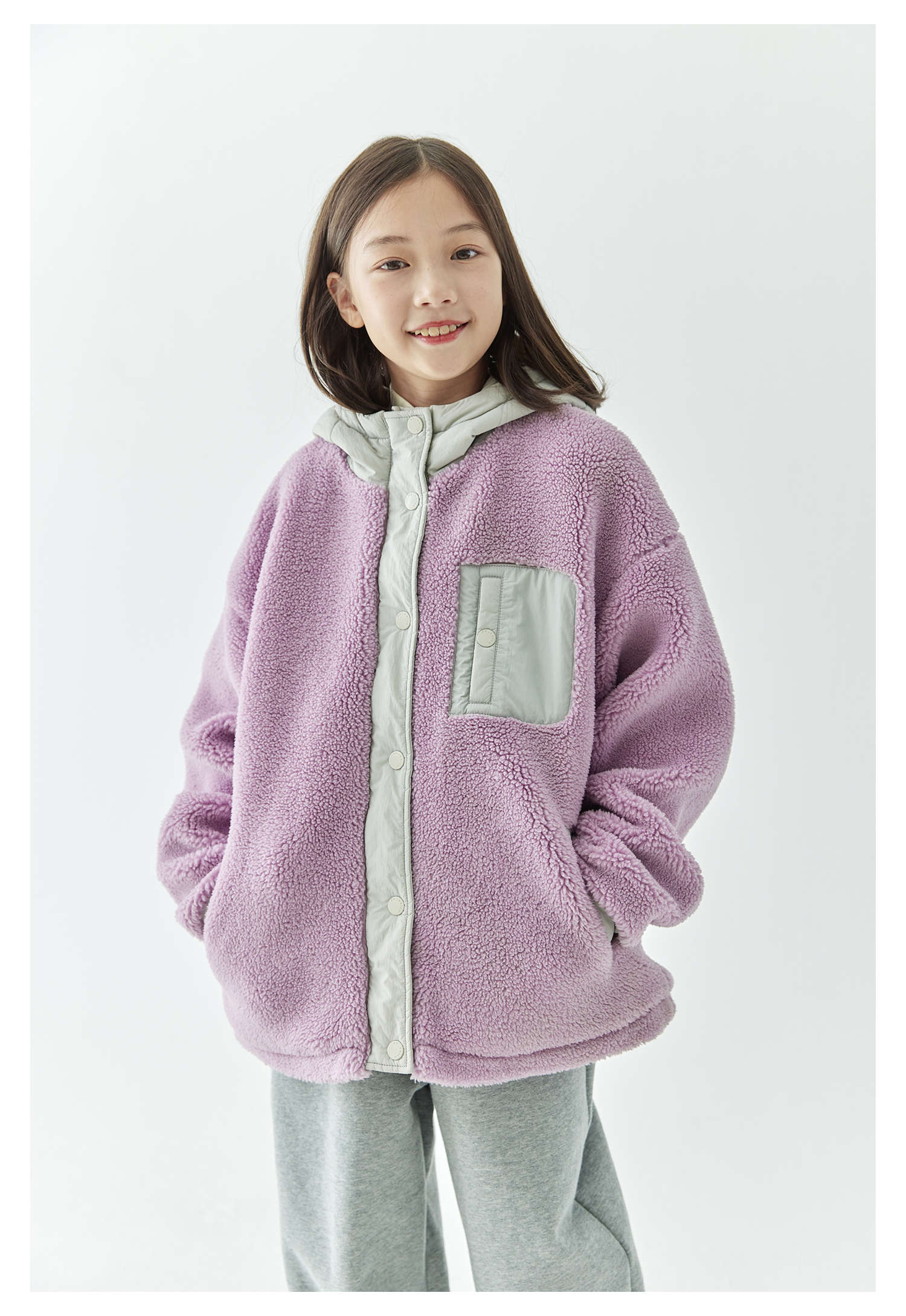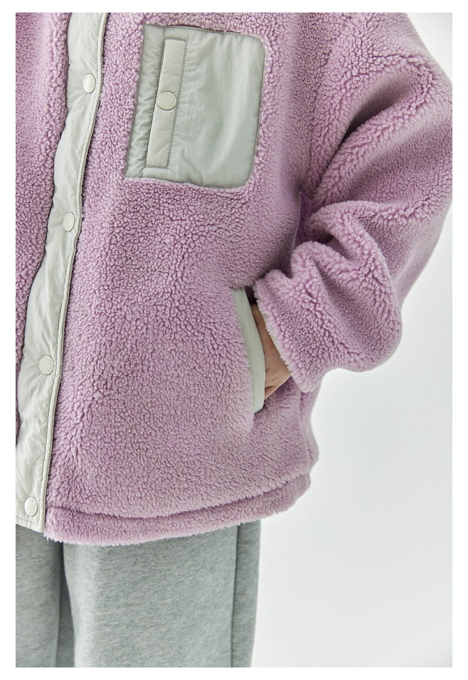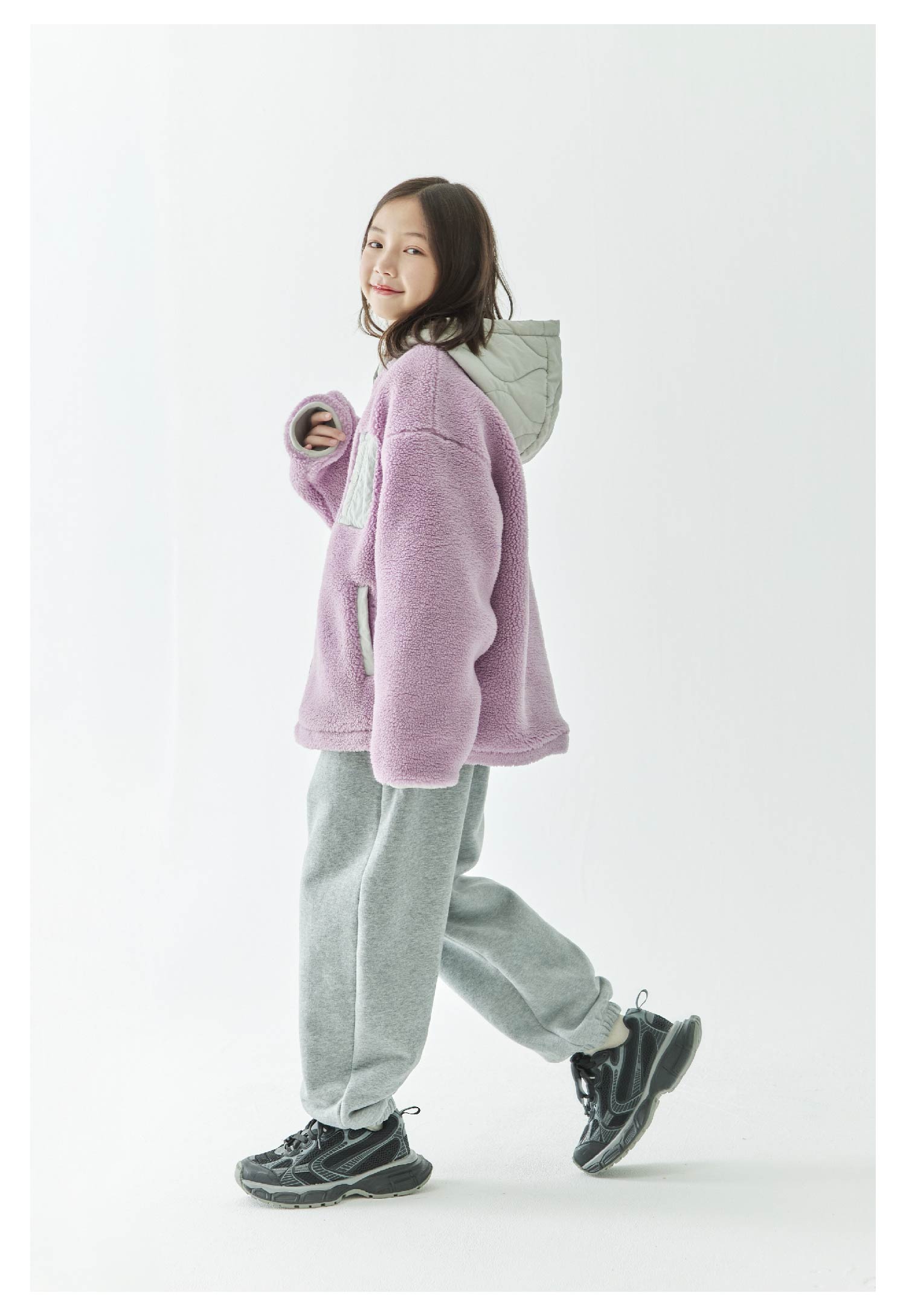 棵初24年冬季新款儿童仿羊羔毛外套亲子撞色拼接保暖宽松连帽上衣