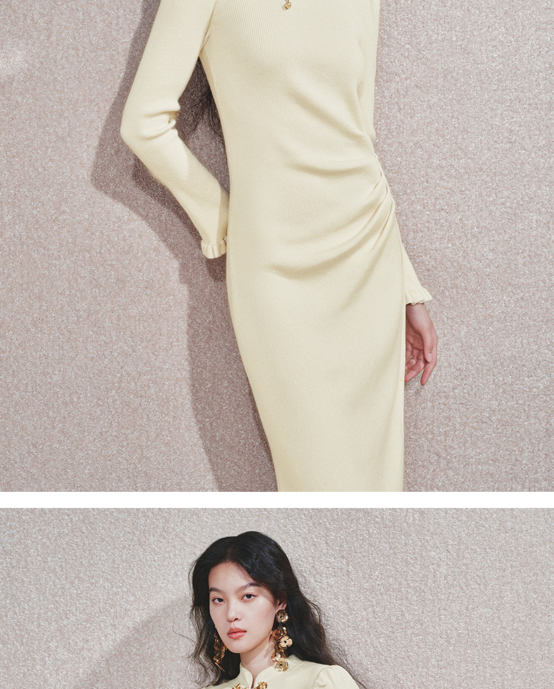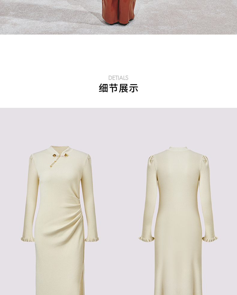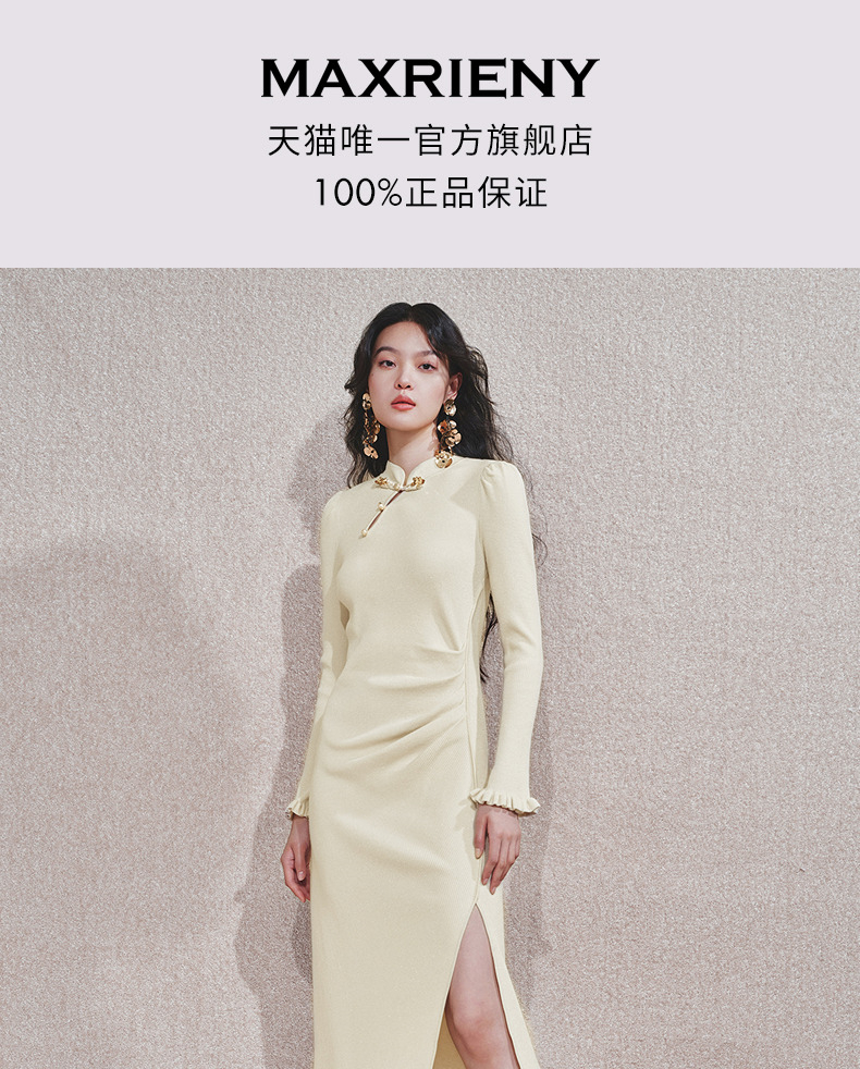 【商场同款-节庆新中式】MAXRIENY如意鎏金连衣裙中式抽褶连衣裙(货号:MC85DR756)