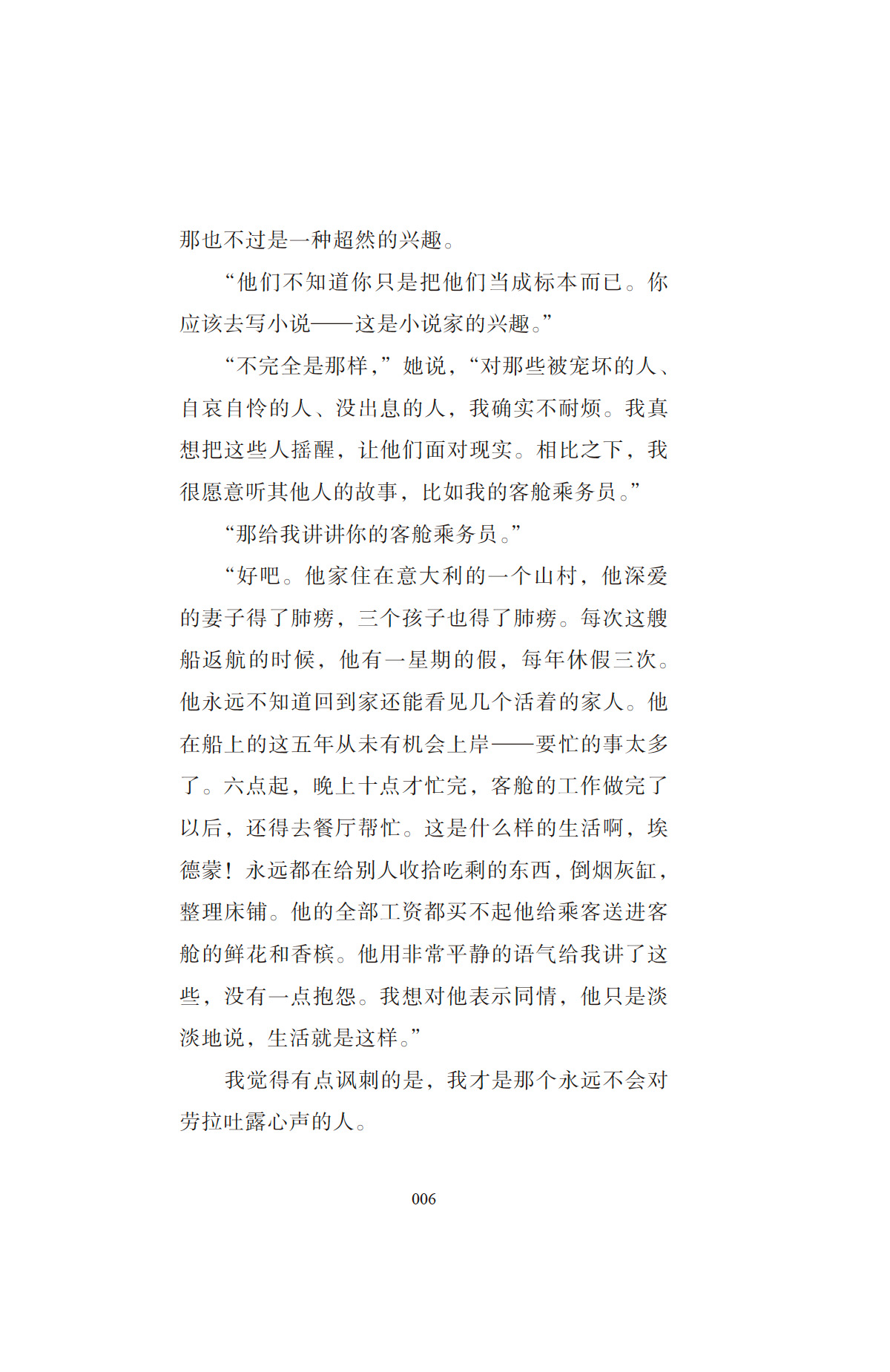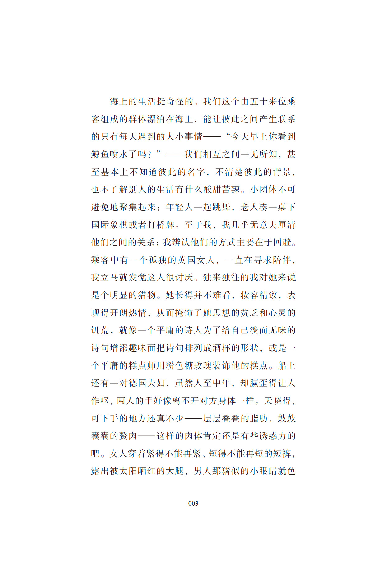 3. 本书的语言唯美轻盈,轻巧、流动、富有深度,文学性强,如大海般给人以宁静的慰藉和情感的震荡,带来阅读享受。