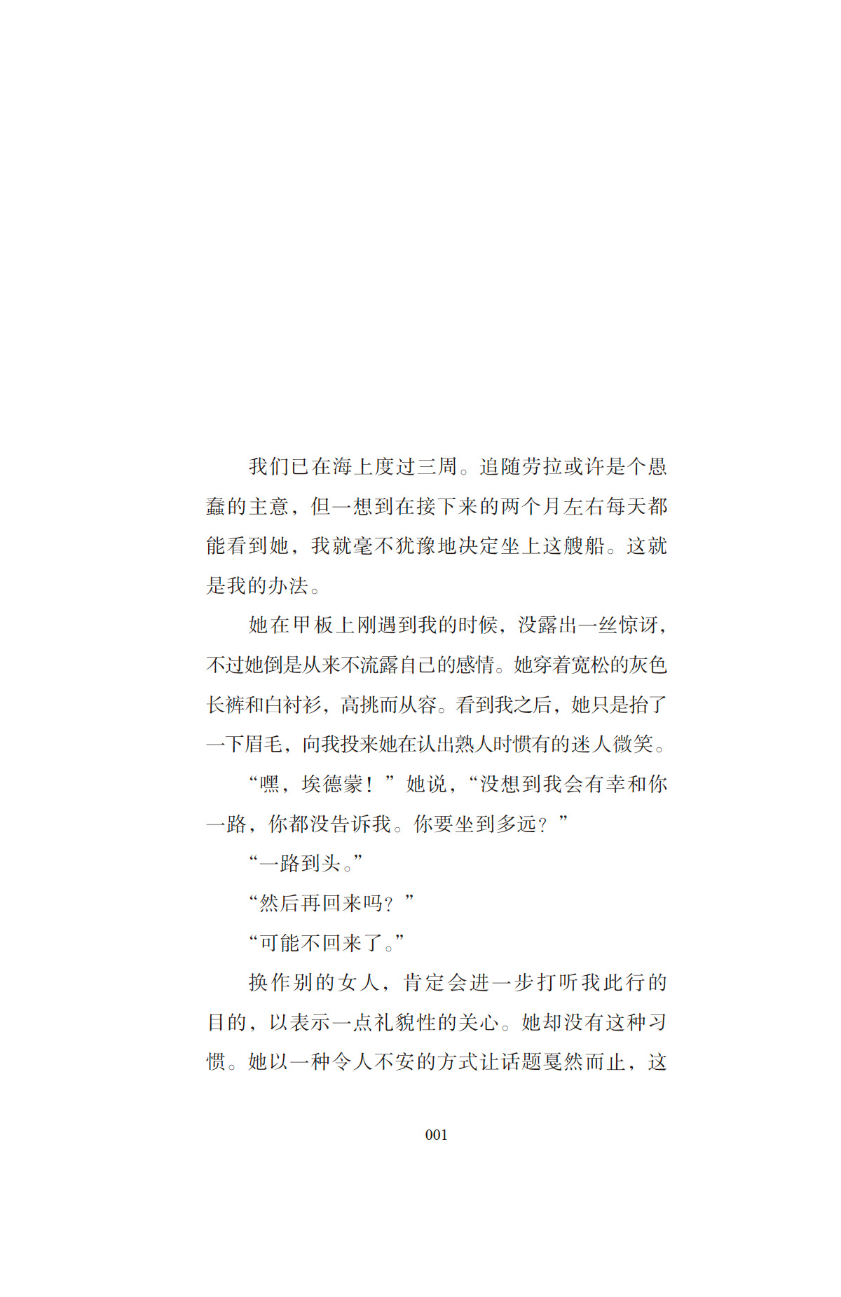 一个身患绝症的记者与自己倾慕的女子在海上度过生命的尾声,他将秘密——即将到来的死亡和始终克制的爱慕——埋藏于心,在漫无目的的海上航程中,重新审视自己的人生观念和内心情感。书中对爱情的隐忍、嫉妒、卑微、欲望、禁忌刻画细微精确,引起所有曾经或正陷于隐秘爱恋之人的共鸣;主角在走向死亡之时对自我、人生、人性的审视充满哲理,发人深思。