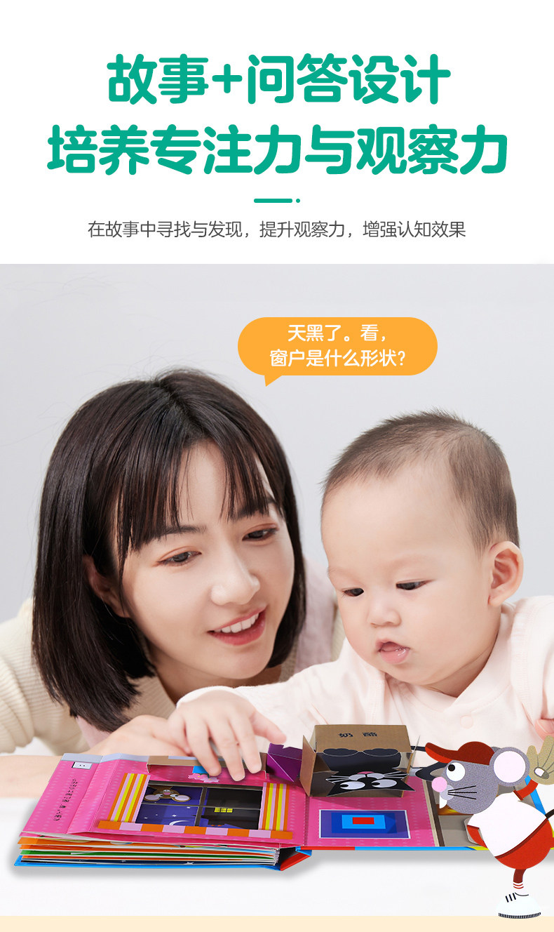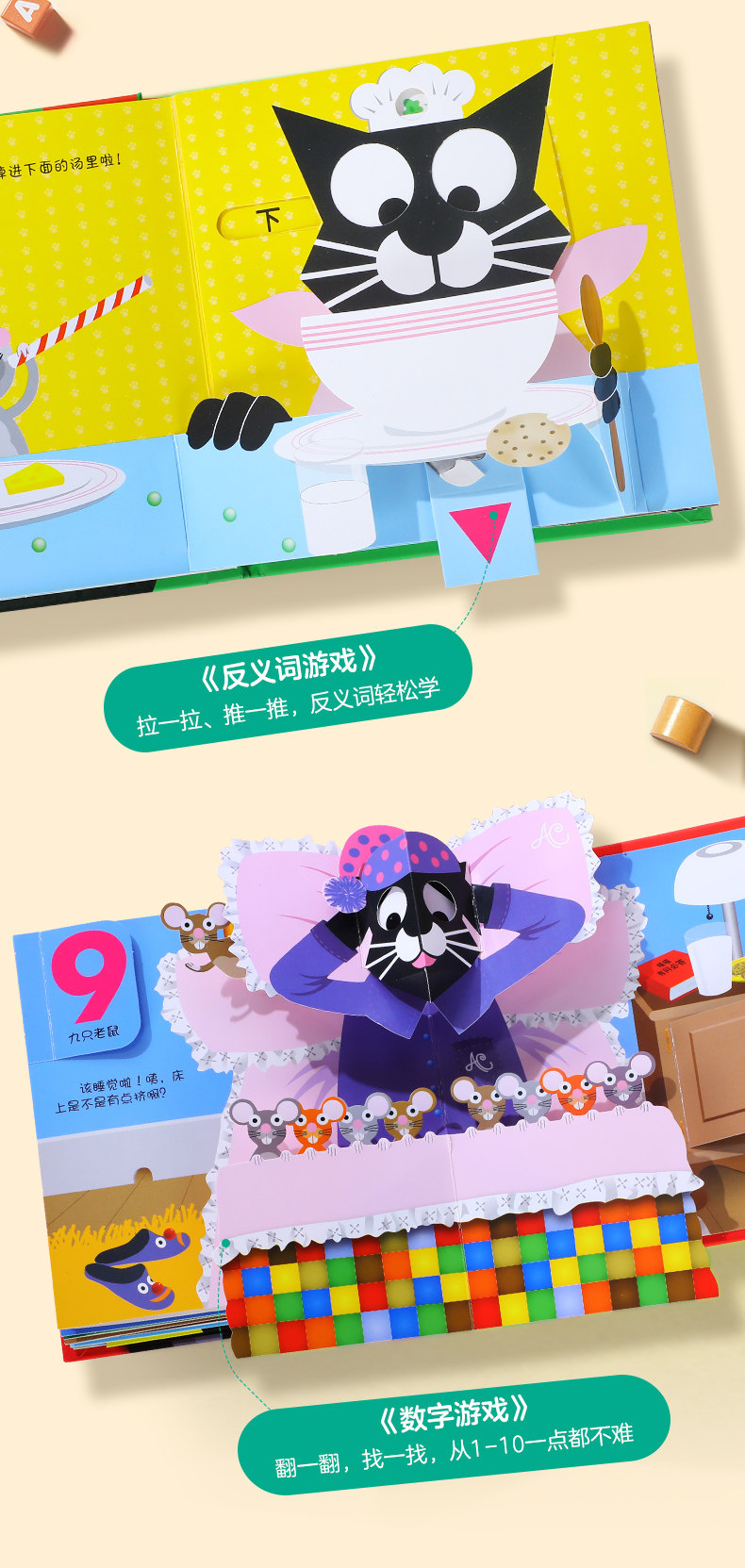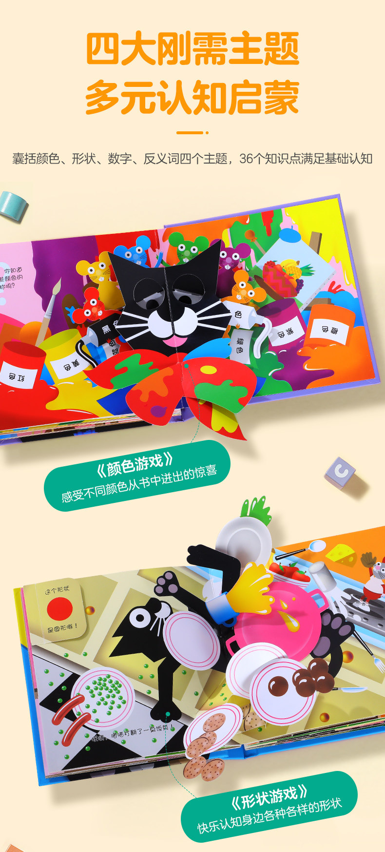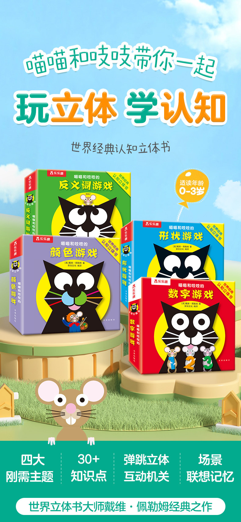 乐乐趣 喵喵和吱吱的趣味认知立体书全4册 颜色+数字+形状+反义词游戏