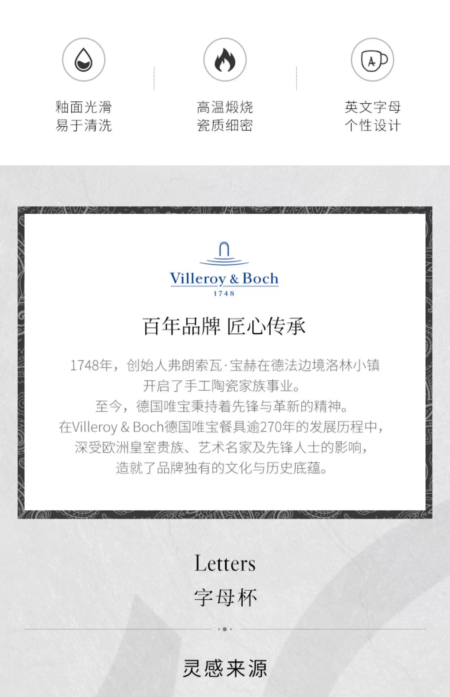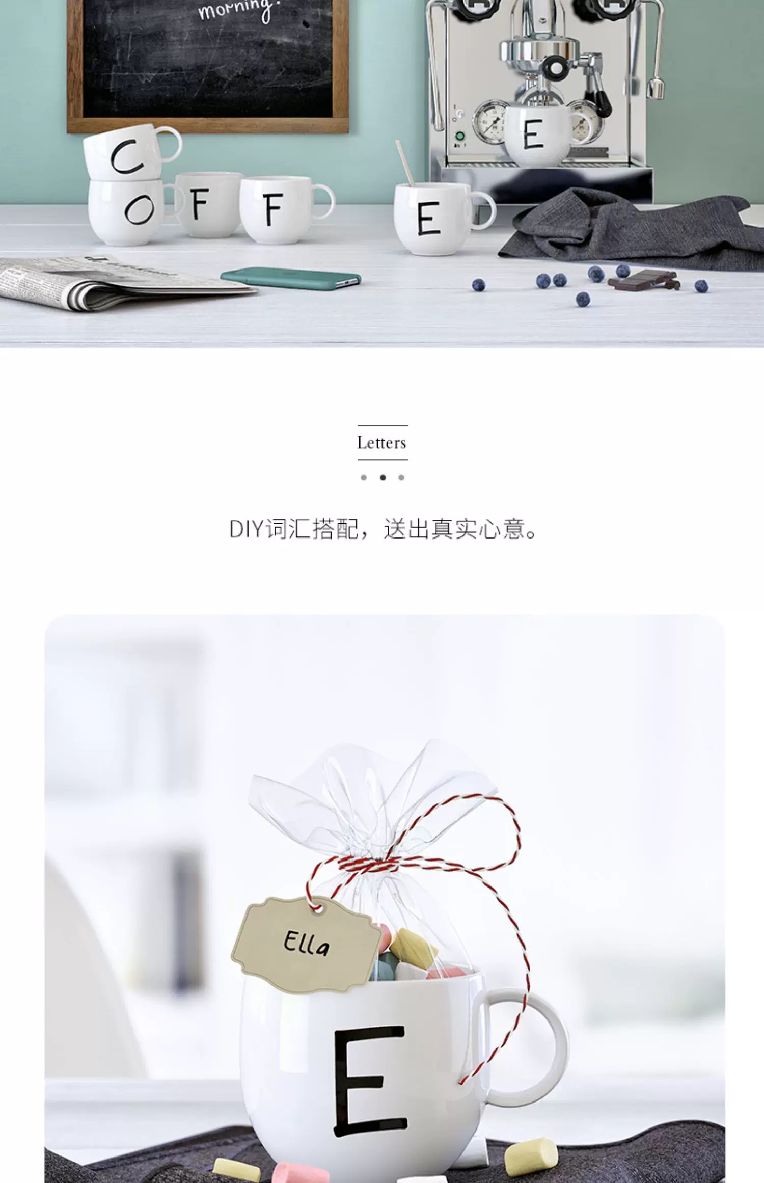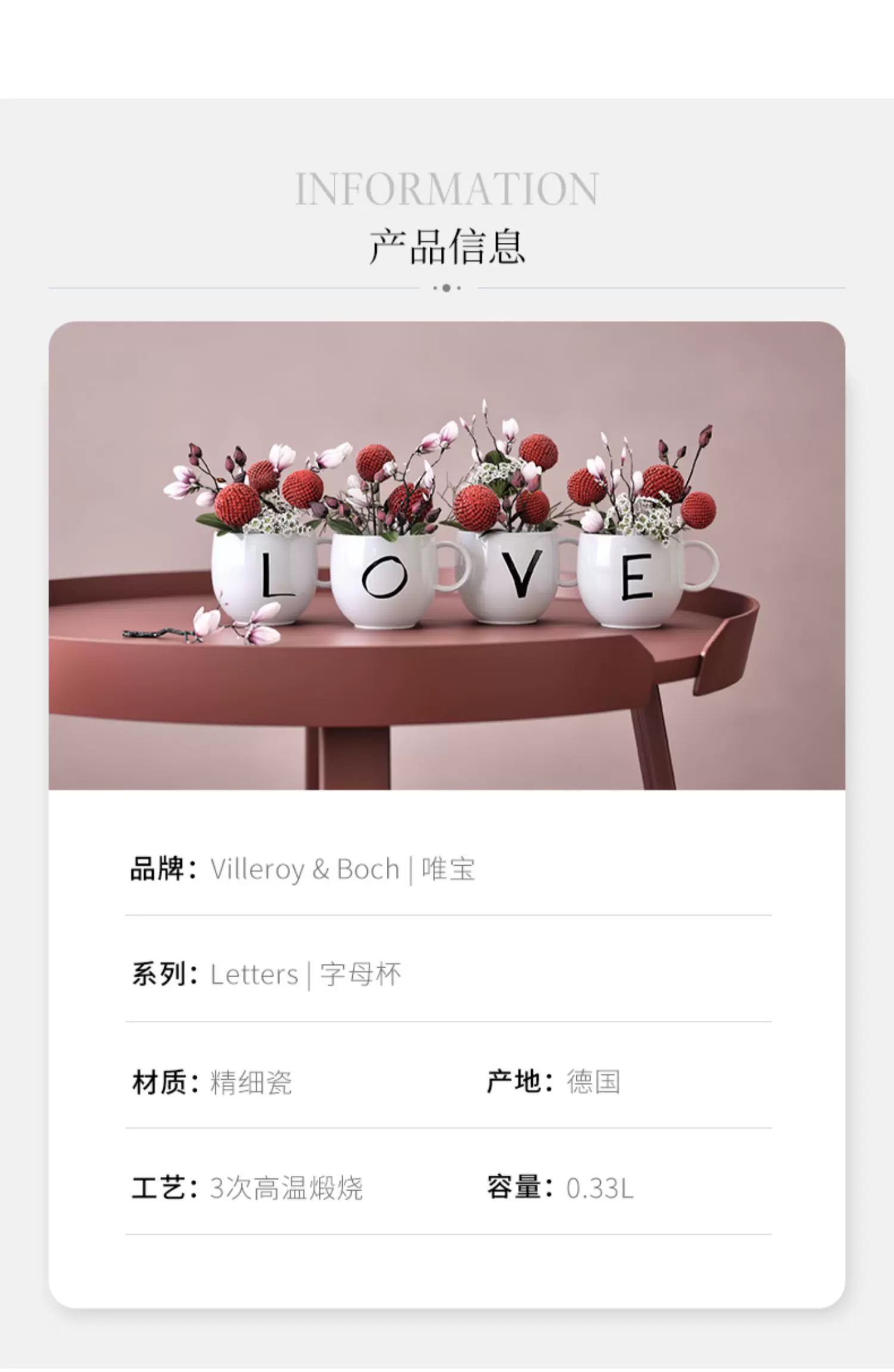 【VilleroyBoch 德国唯宝】字母咖啡杯马克杯 26字母杯创意家用(3个装,字母随机)
