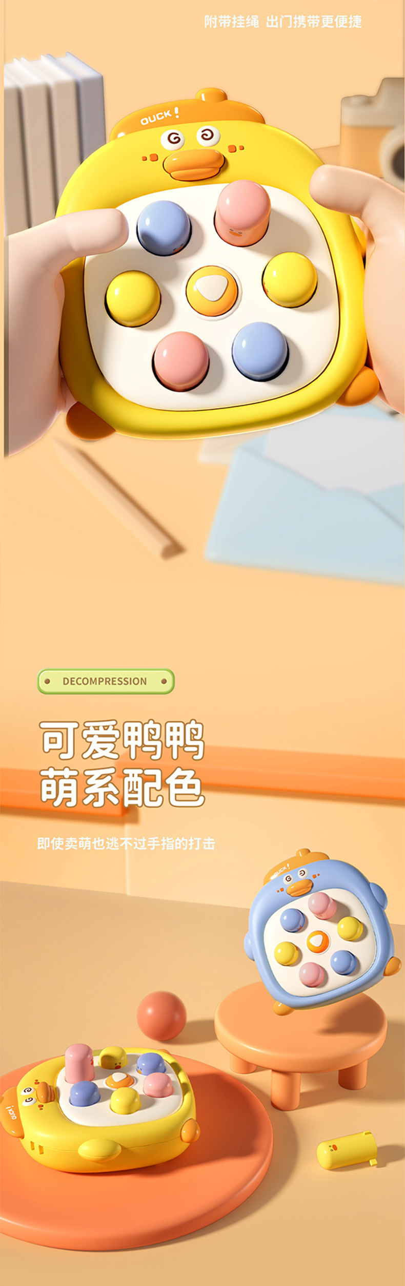 【可爱鸭鸭,萌系配色!】儿童玩具掌中小鸭打地鼠按按乐,亲子互动早教益智玩具,趣味解压好玩不用电!-QQ