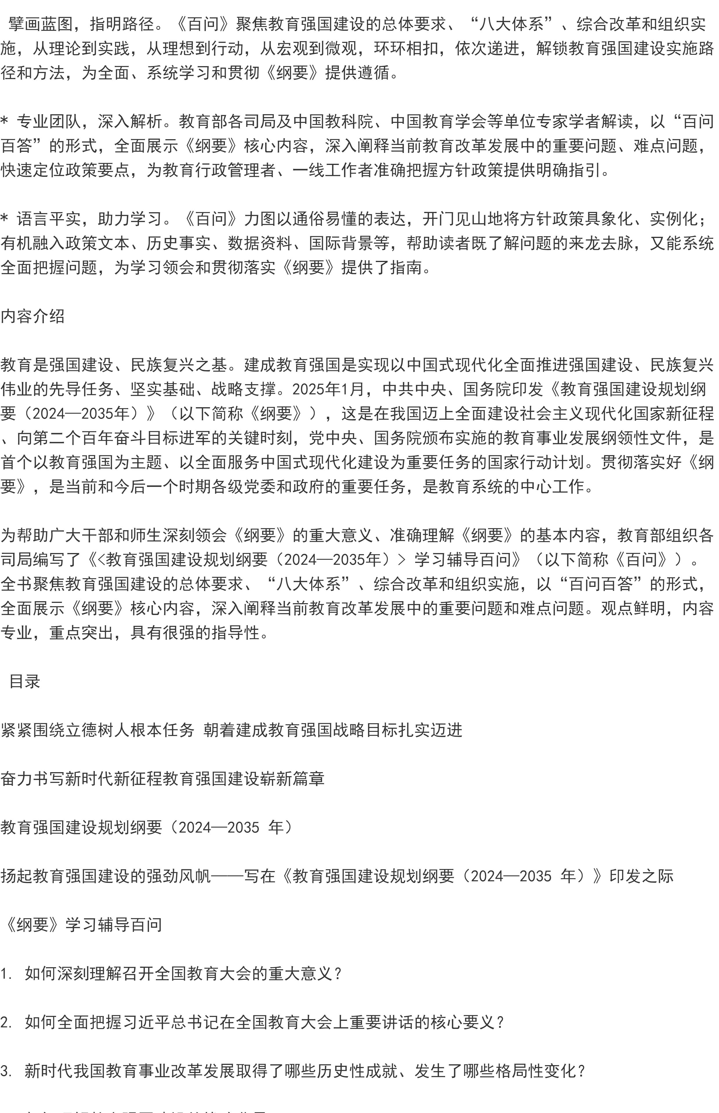 教育强国建设规划纲要2024-2035年学习辅导百问 教育科学出版社