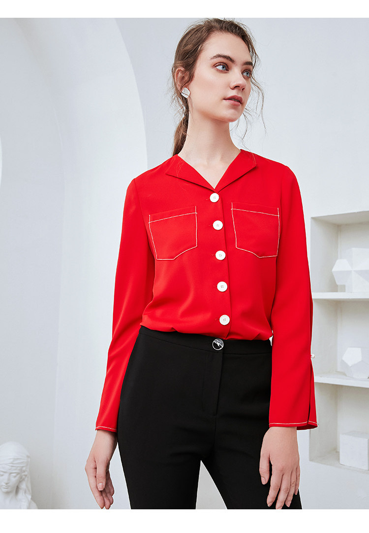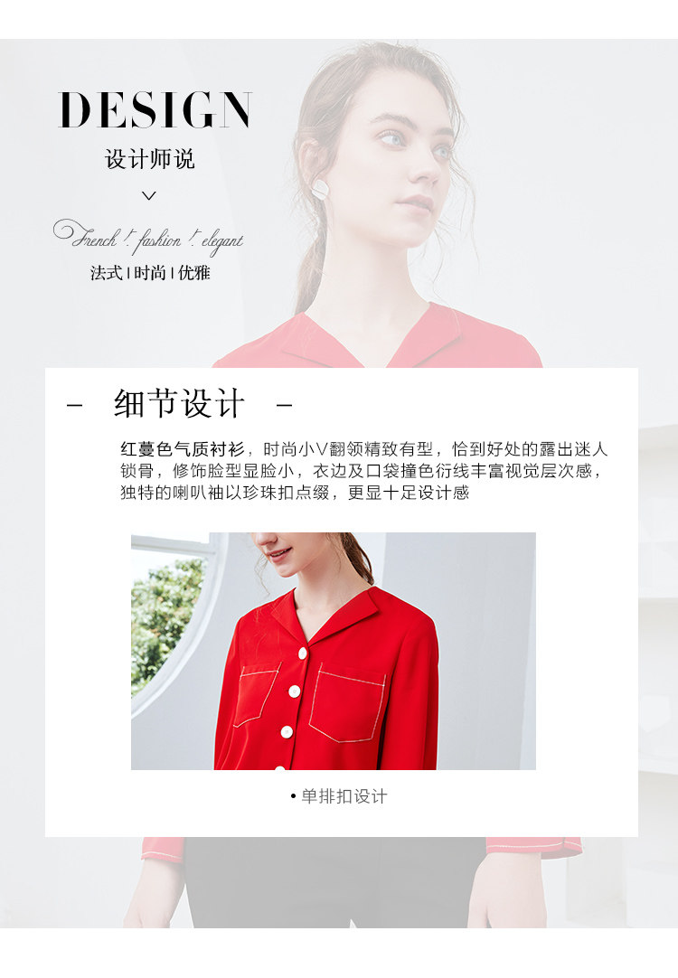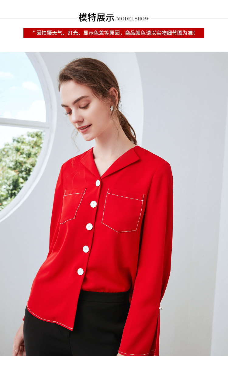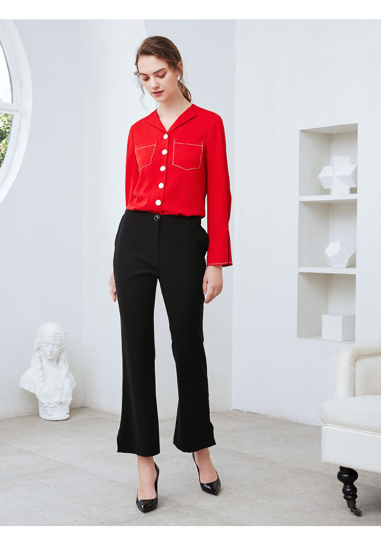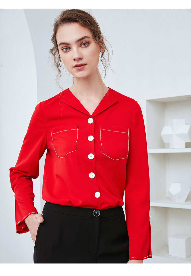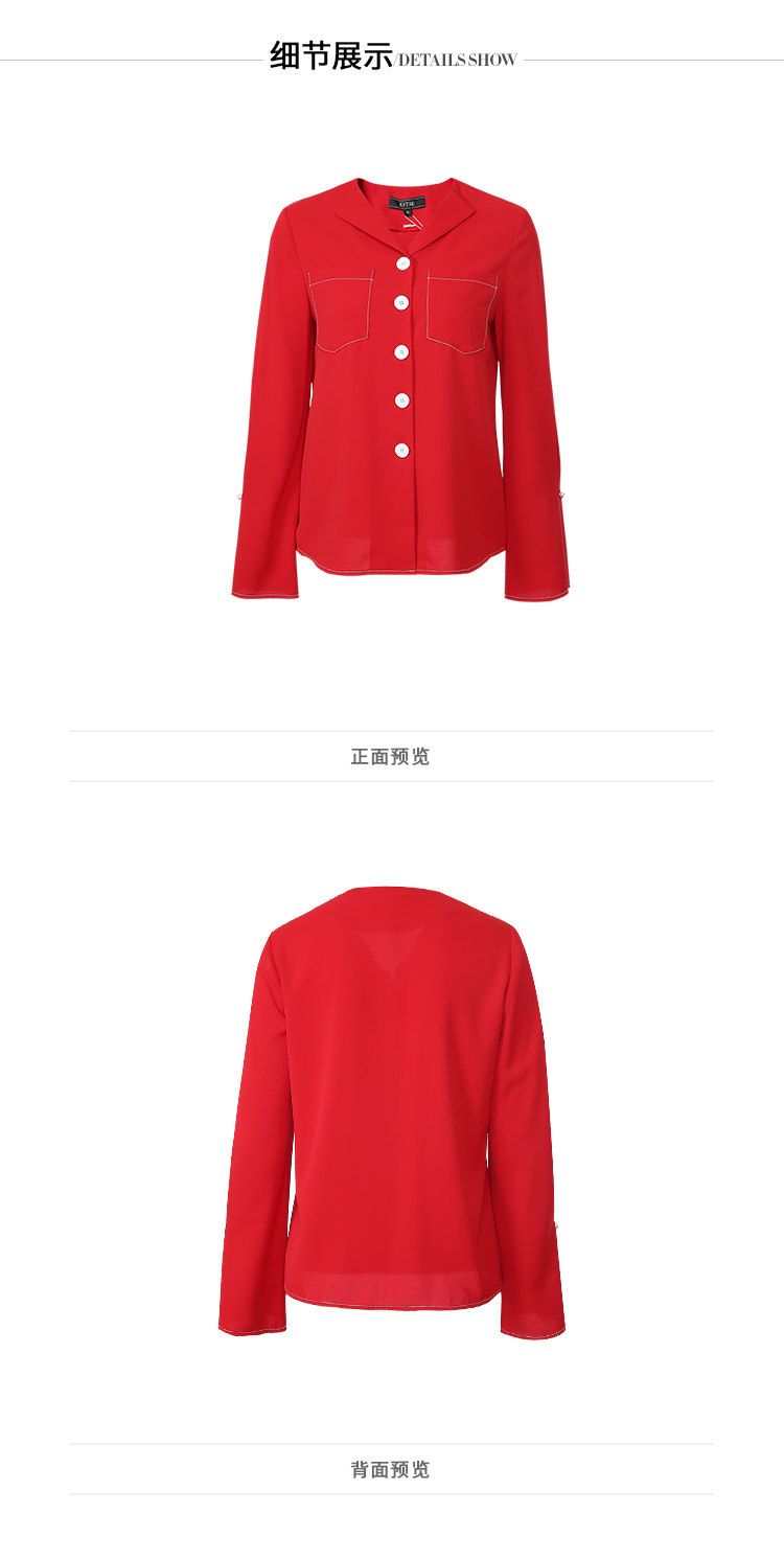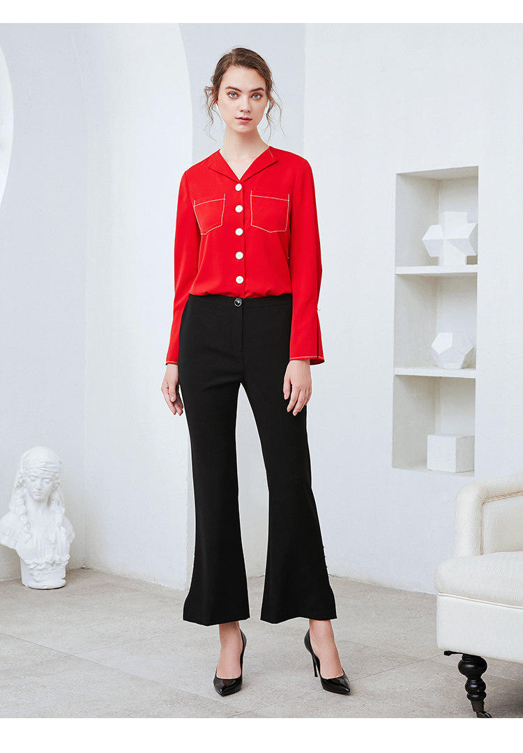 EITIE爱特爱秋季新款时尚通勤职业百搭显瘦喇叭袖衬衫上衣女C2009534
