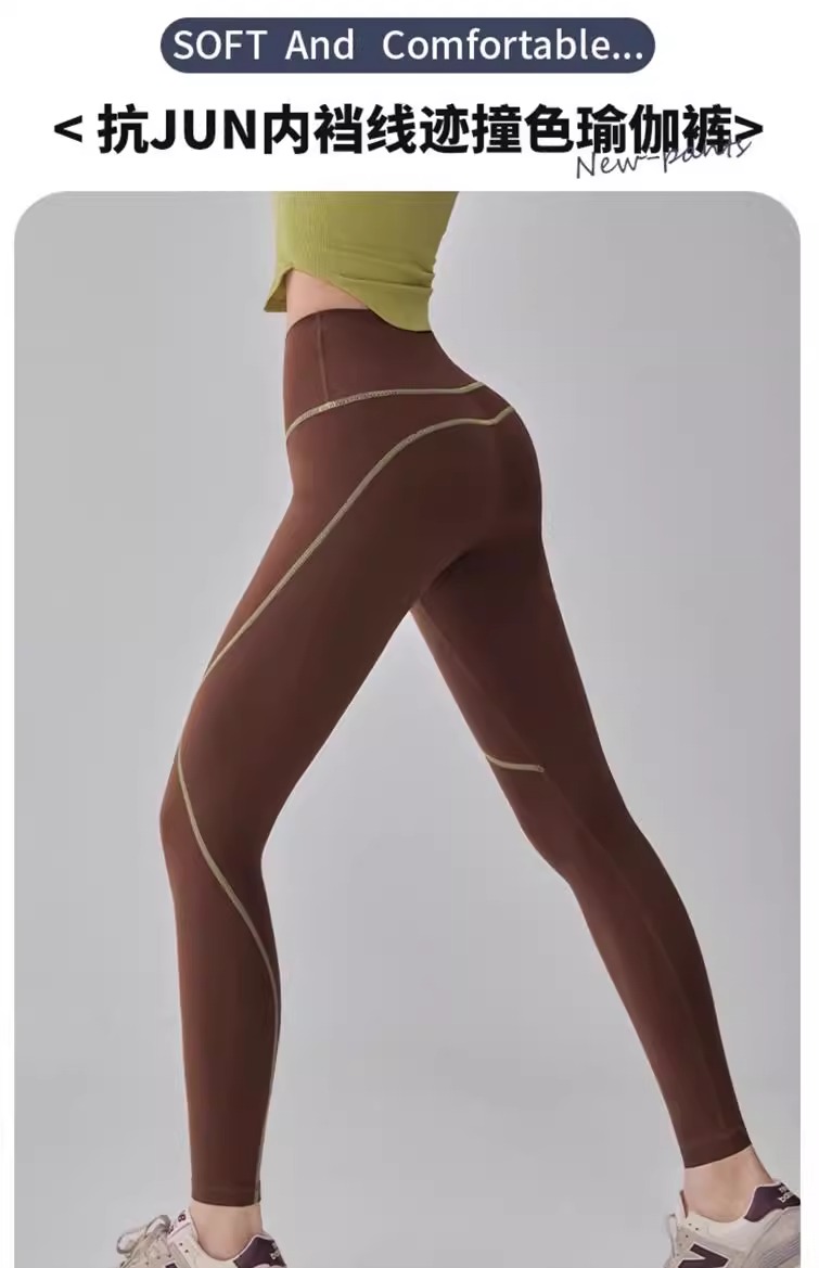 【限时秒】YOGACODE【火树银花系列】线迹撞色瑜伽裤户外登山7A抗菌提臀健身裤DWP115107