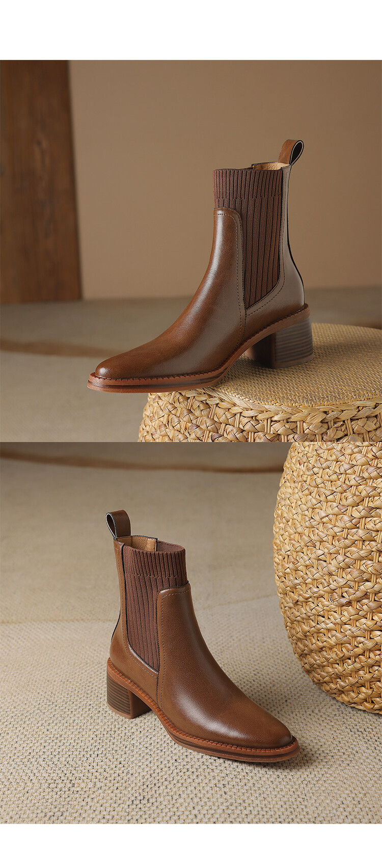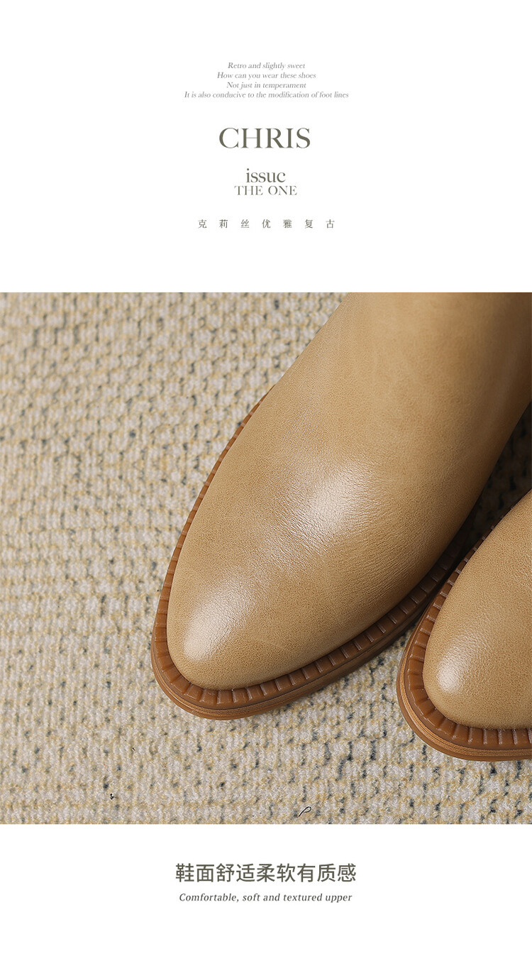 牛皮粗跟短靴,女秋季女靴英伦风马丁靴粗跟中跟裸靴复古女鞋DTN-X906-5