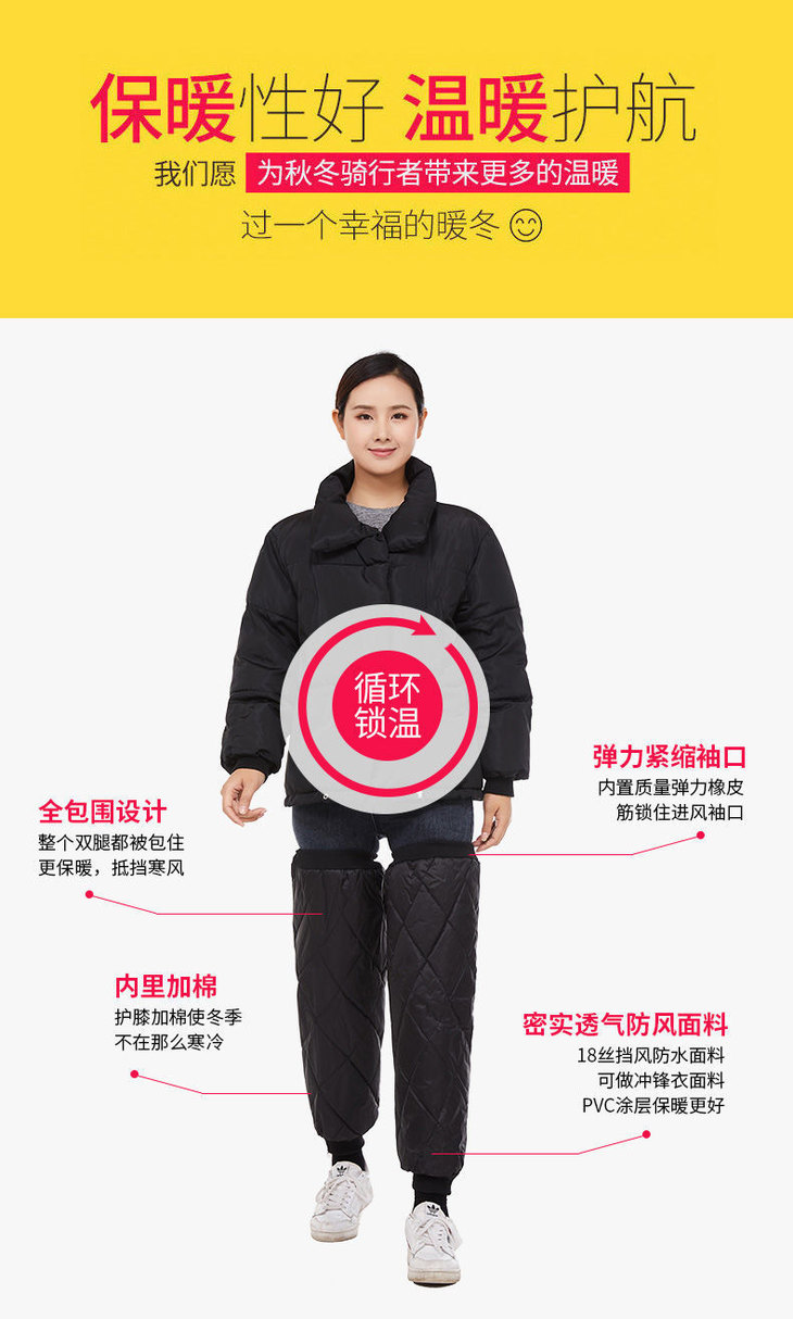 【春艺】冬季电动摩托车护膝保暖挡风护腿加绒护膝男女防寒女加厚防风骑车-D仓