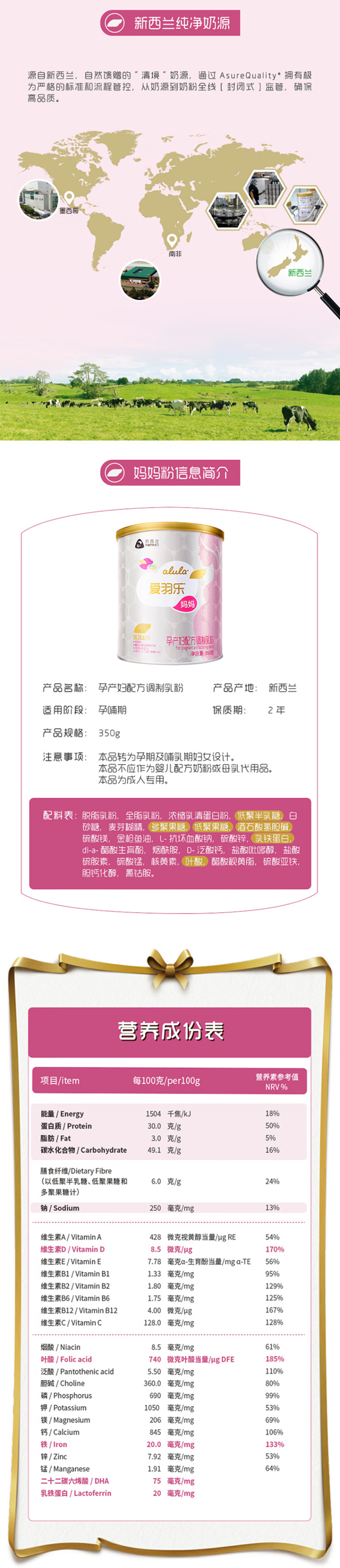 爱羽乐孕妇奶粉350g