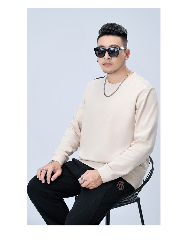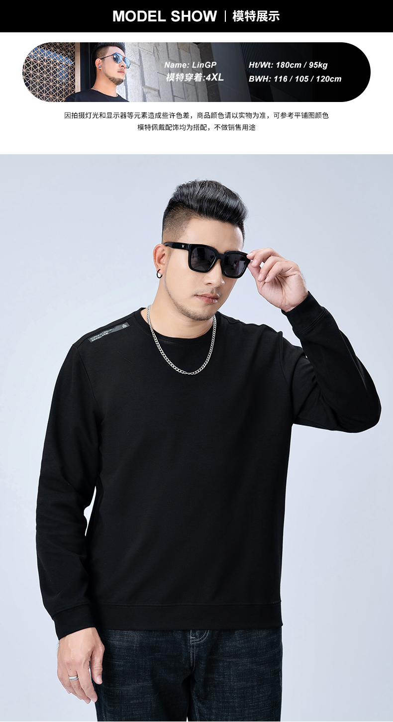 【新款DMH】大依优型大码圆领卫衣长袖弹力加肥加大胖子上衣男士T恤肥佬打底男装