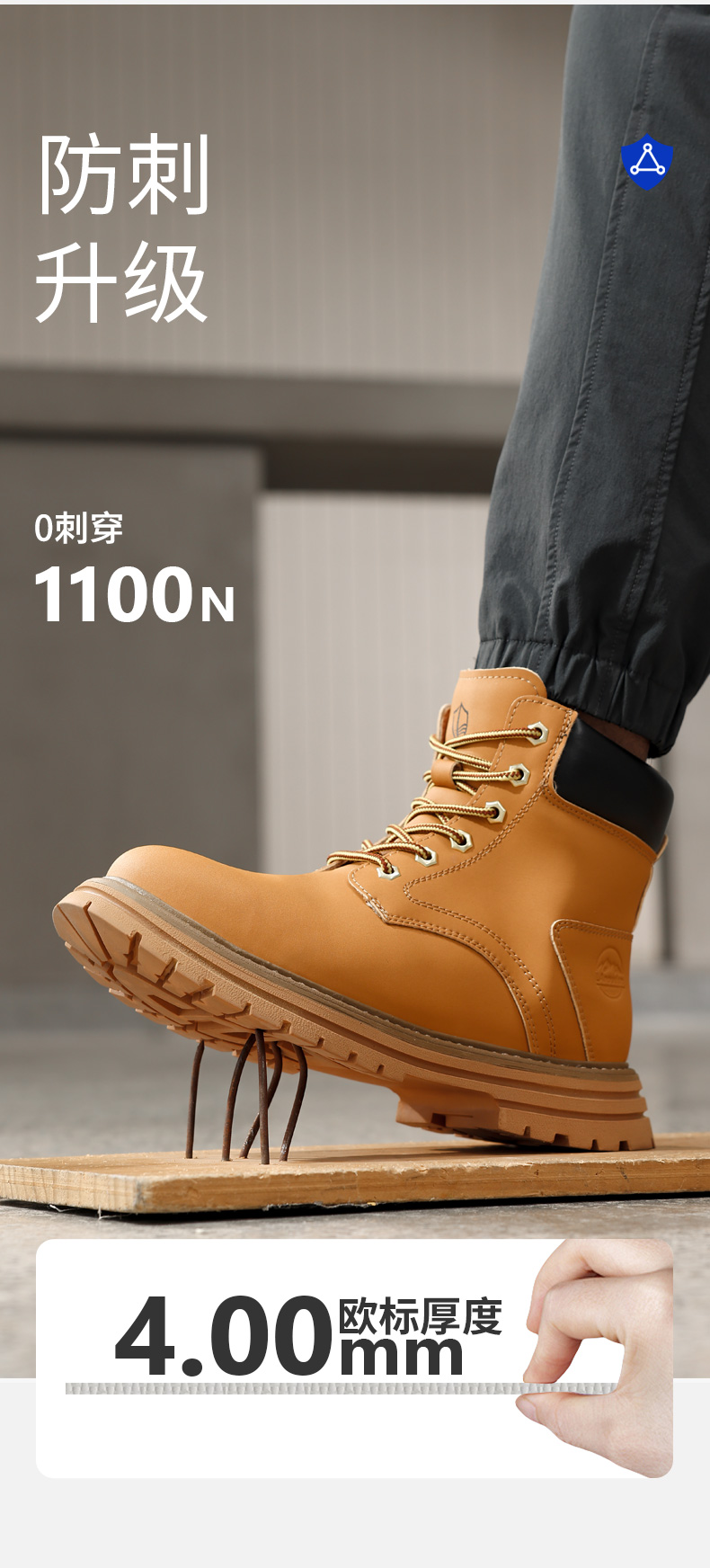 蓝鸥盾新款劳保鞋防砸防刺穿4.0凯夫拉中底橡胶底耐磨高帮四季款