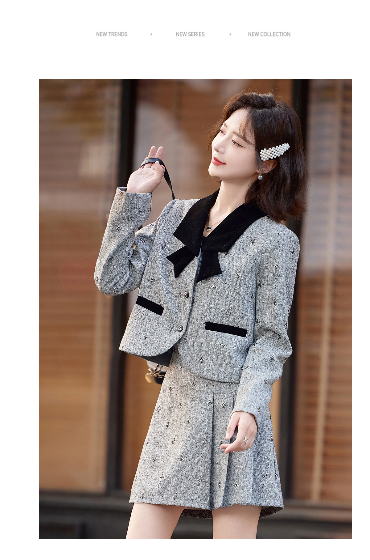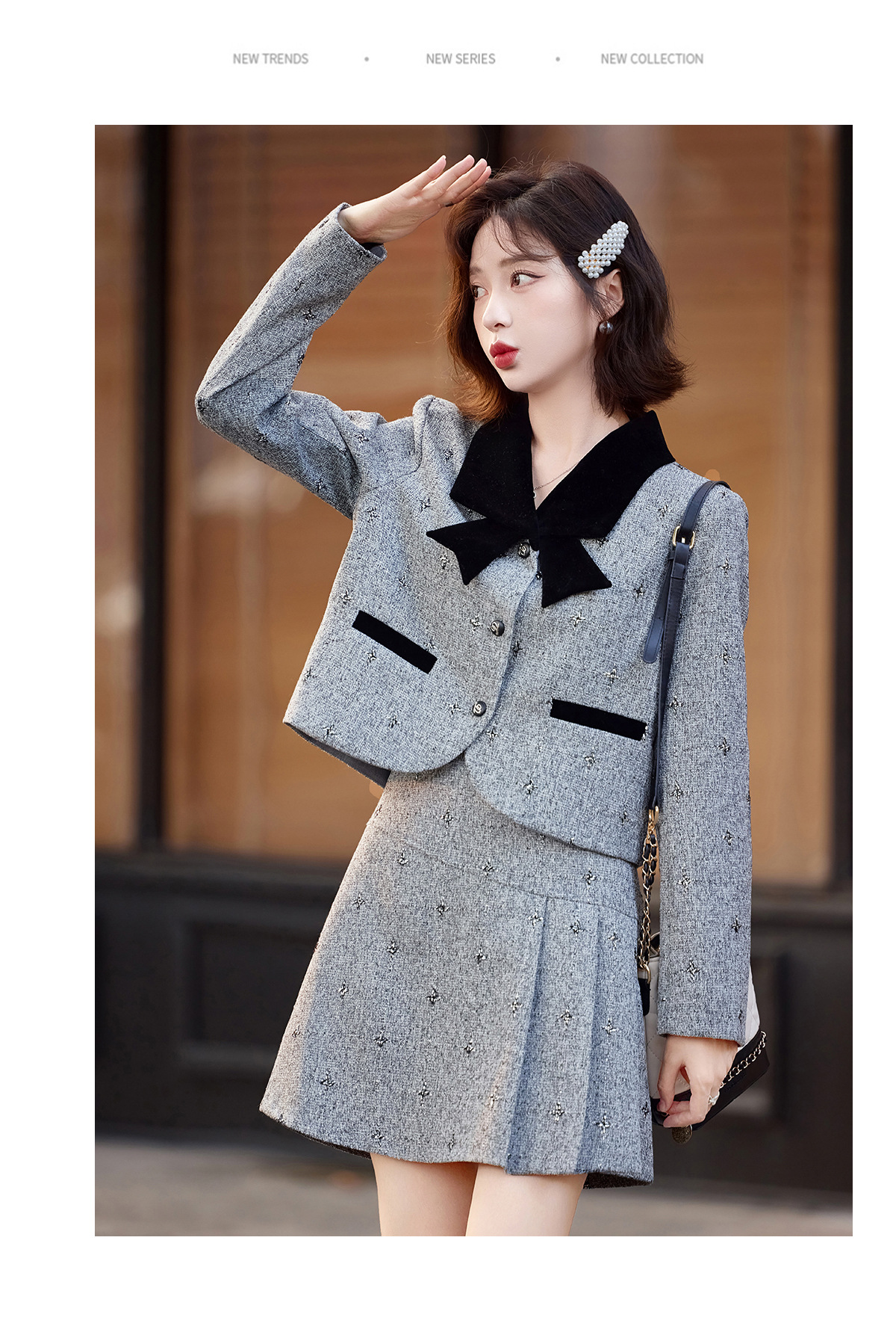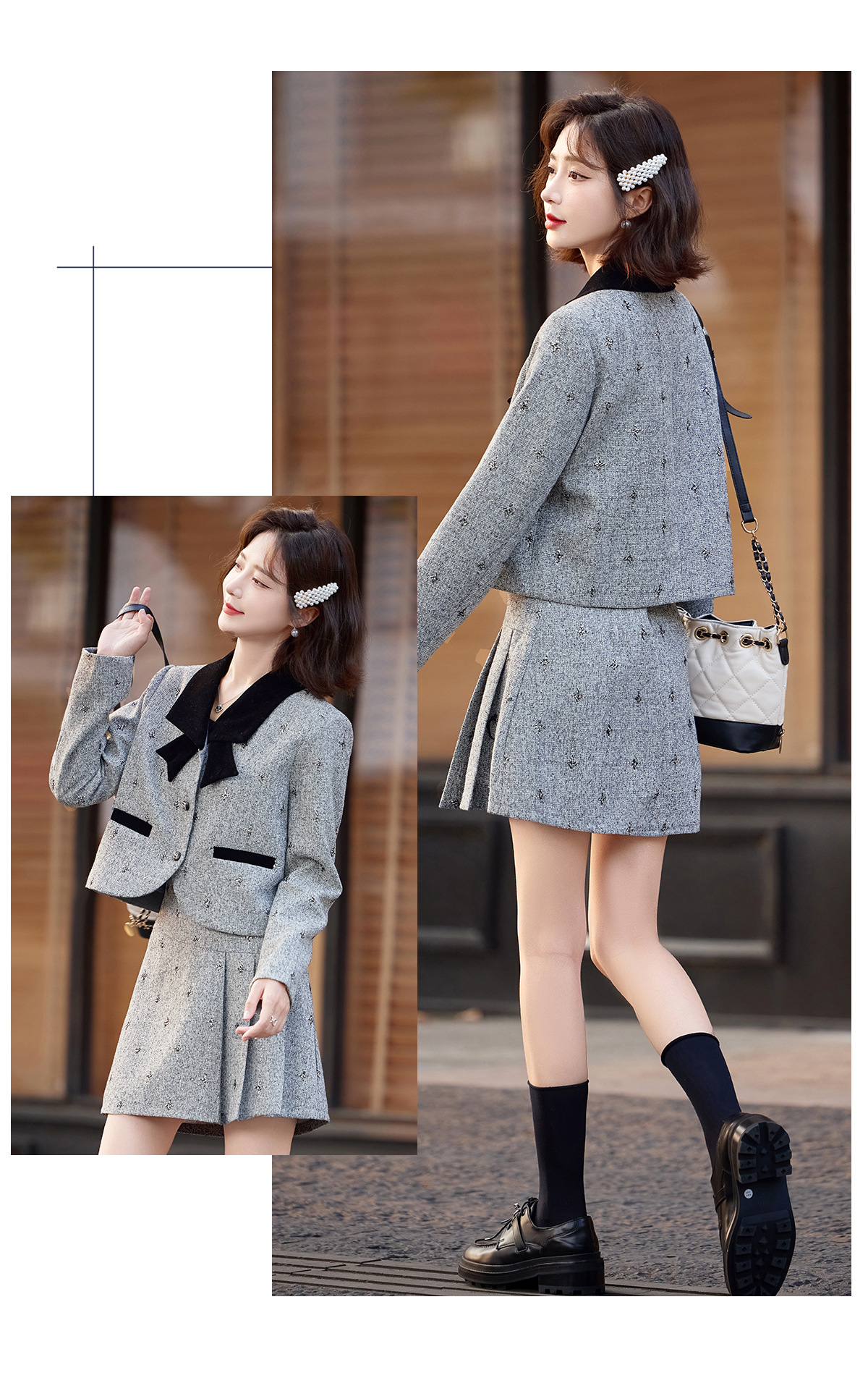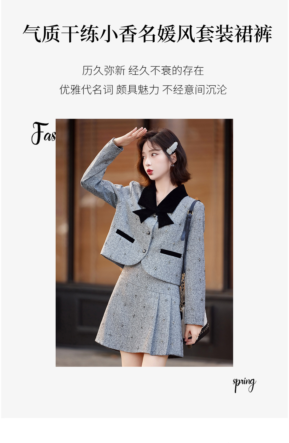 小香风蝴蝶结套装,时尚气质减龄撞色小个子两件套裙HR-ZYQQ10