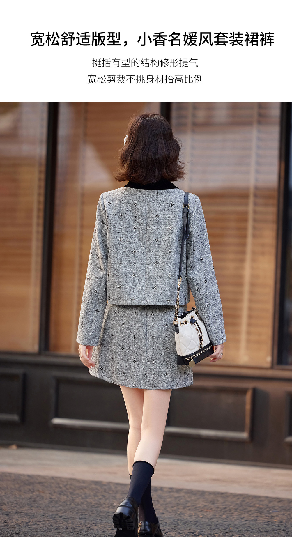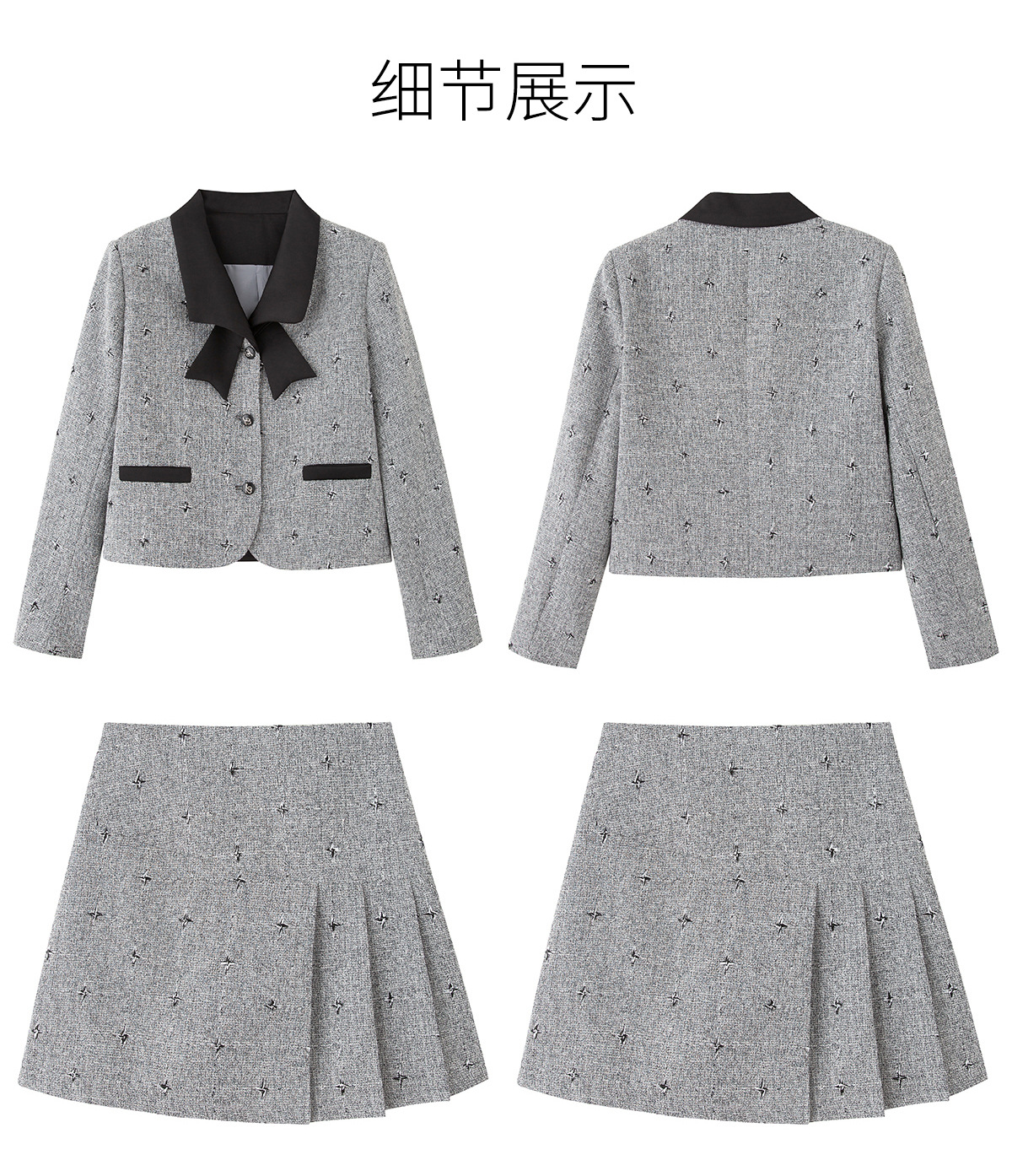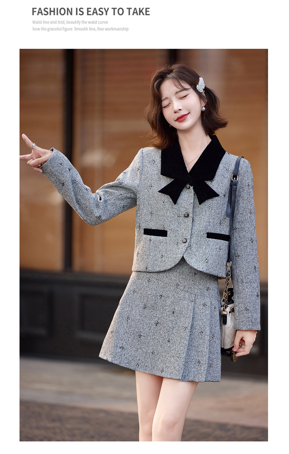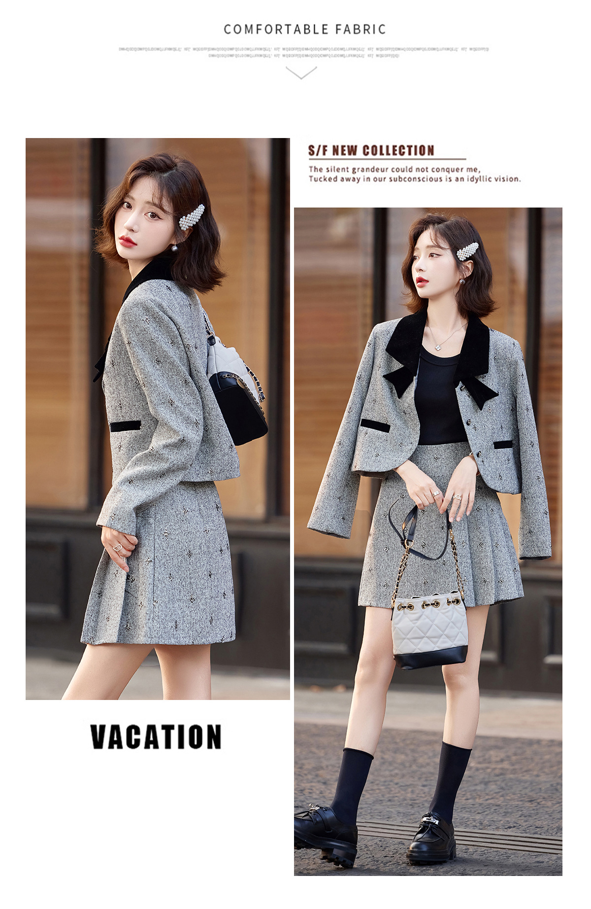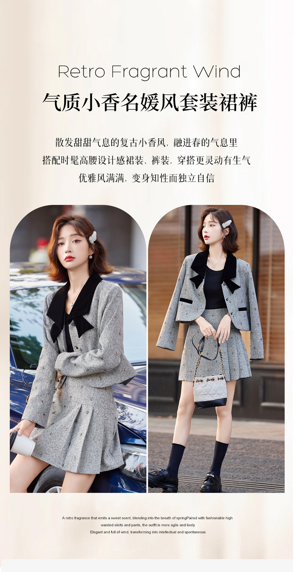 小香风蝴蝶结套装,时尚气质减龄撞色小个子两件套裙HR-ZYQQ10